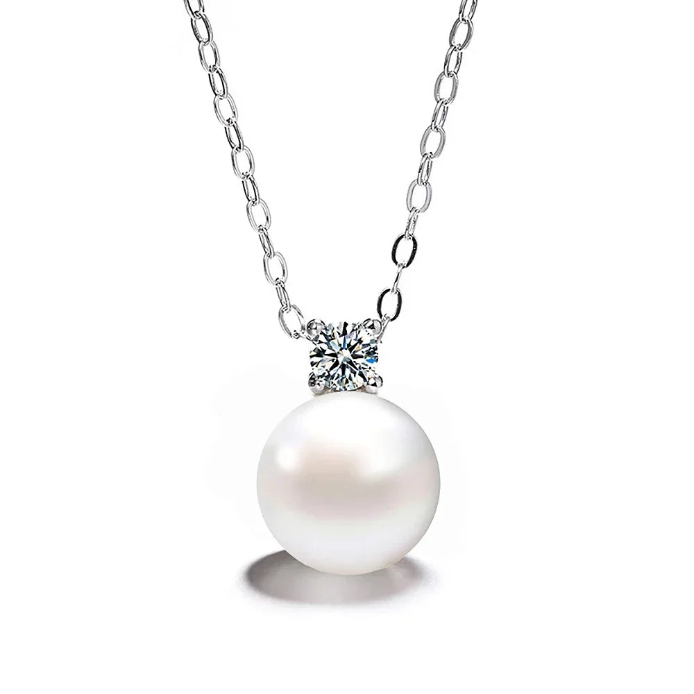 100% 925 Sterling Silver Pearl Moissanite Diamond Jewelry Set with GRACertificate Pendant Necklace Stud Earrings for Women Gift