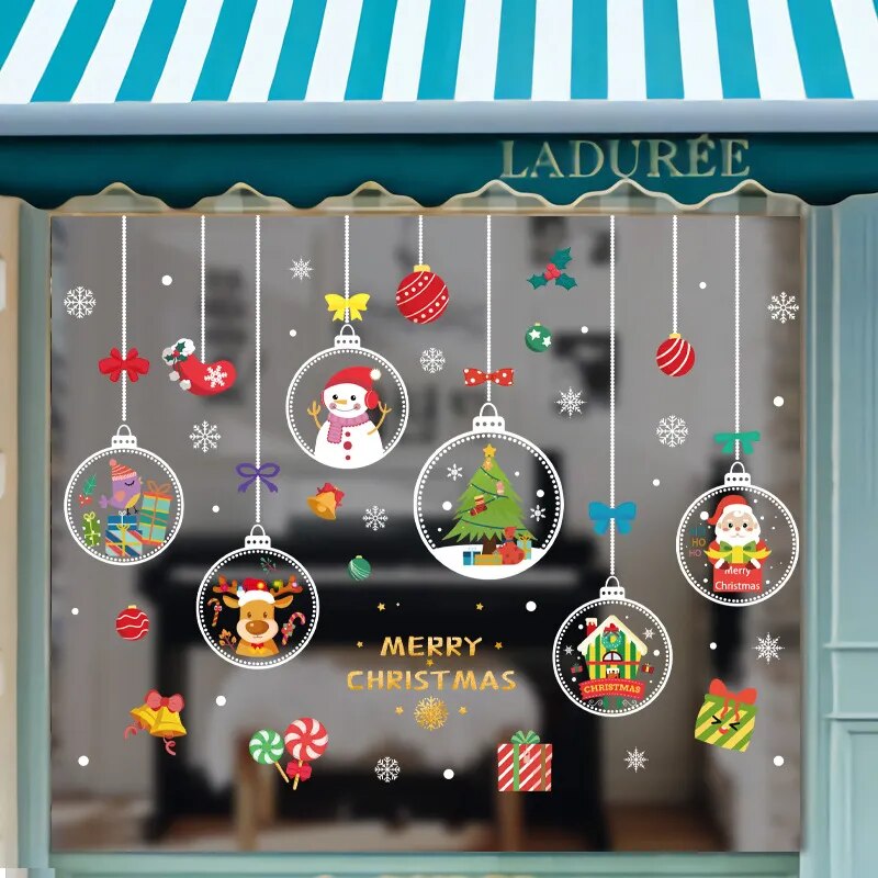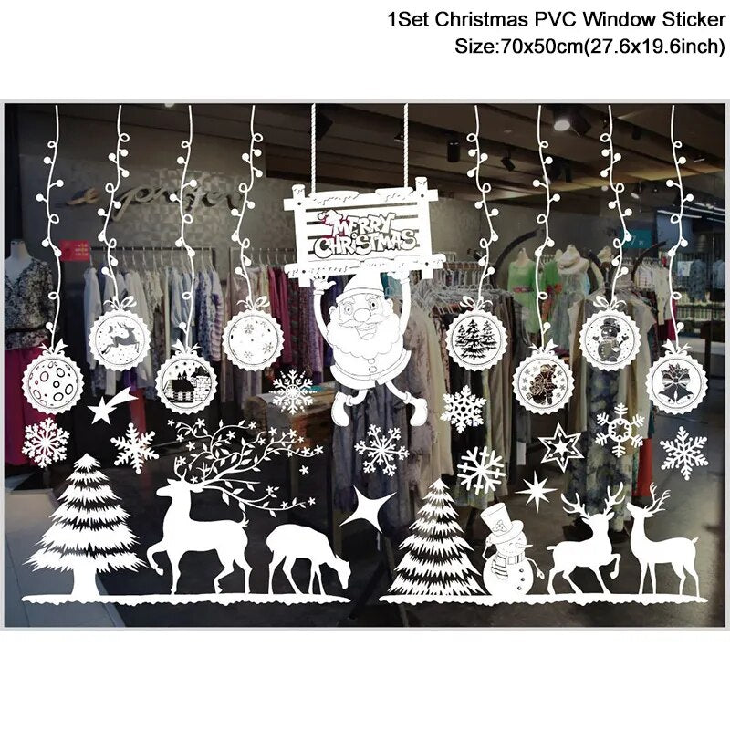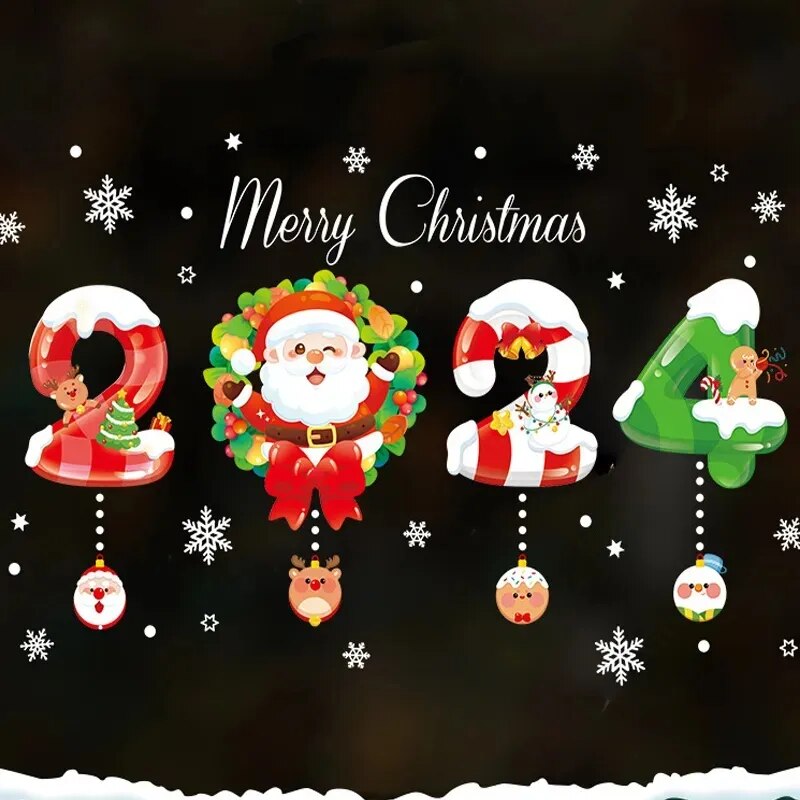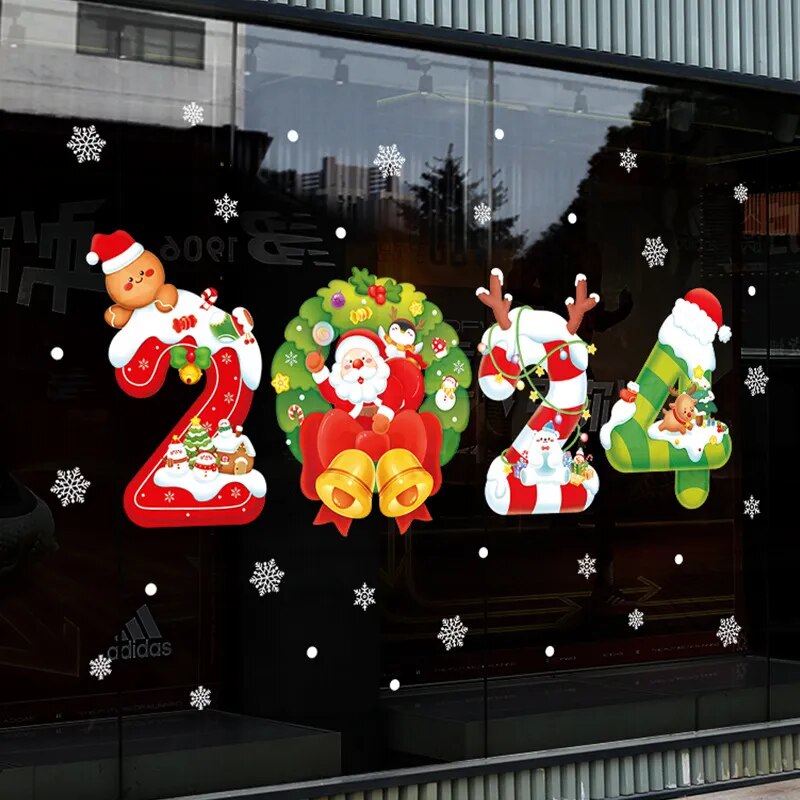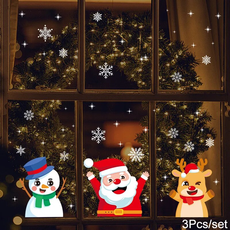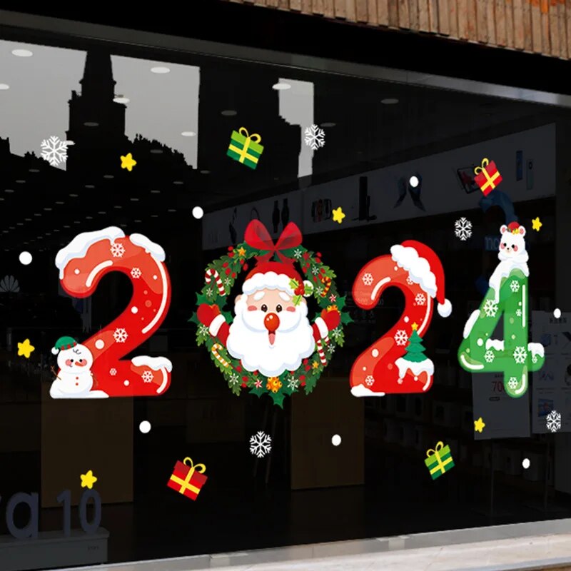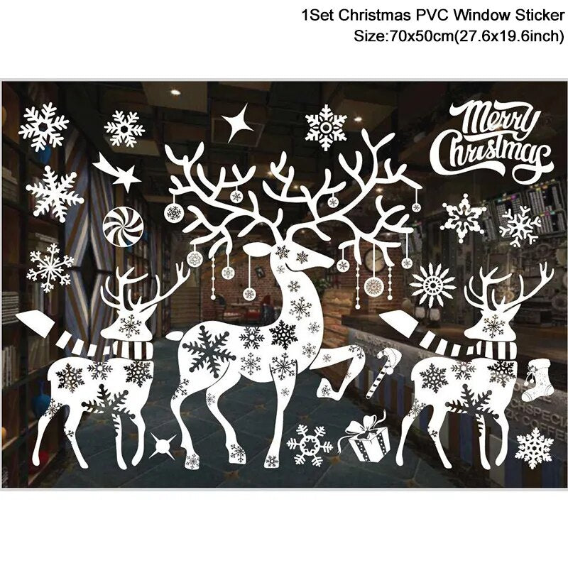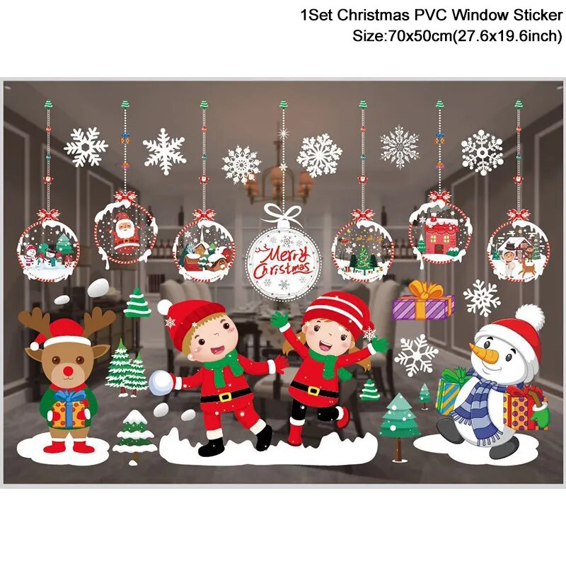 1Set Santa Claus Snowman Elk Window Stickers Snowflake Electrostatic Wall Sticker 2024 Christmas Decoration For Home New Year