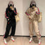 2 Piece Harajuku Women Casual Sports Striped Pant Sets Spring Autumn Preppy Style Embroidered Love Loose Korean Fashion Top Suit