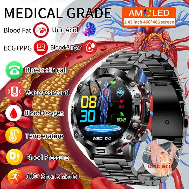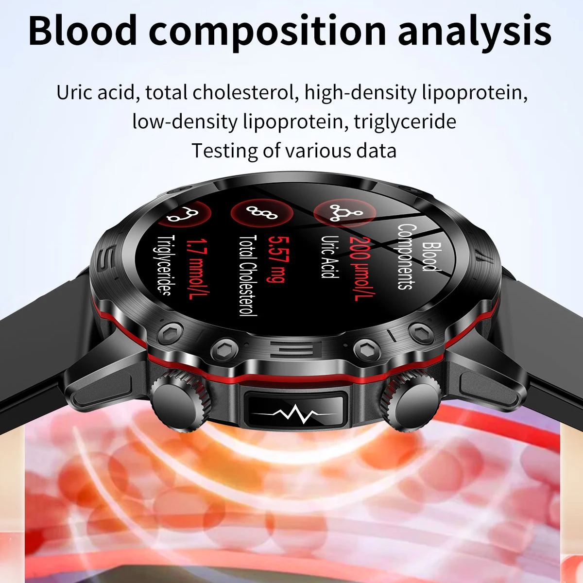 2024 New Blood Lipids Uric Acid Blood Glucose Smart Watch Men ECG+PPG Fitness Tracker Clock Heart Rate Bluetooth call Smartwatch