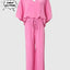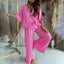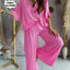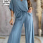 2024 Summer Fashion Set Loose Fit High Waist Large Size 2 Piece Solid Wide Leg Pants V-Neck T-shirt Elegant Pants Set