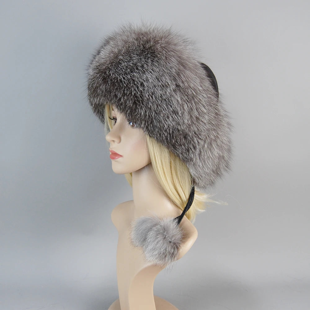 2025 Hot Sale 100% natural Fox Fur Hat Women Cap Thick Fur Cap Winter Warm Hat Female Fashion For Women Hat With Earmuffs Hat