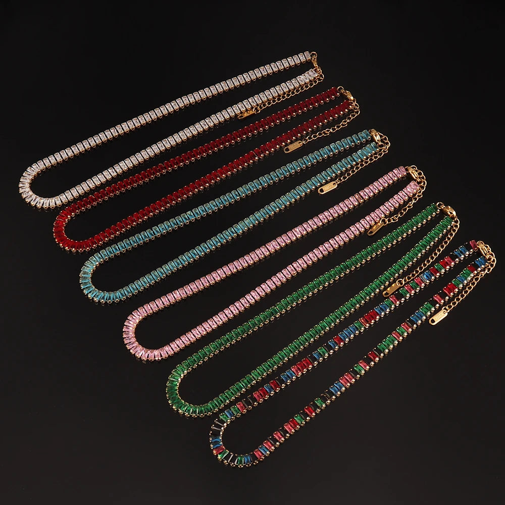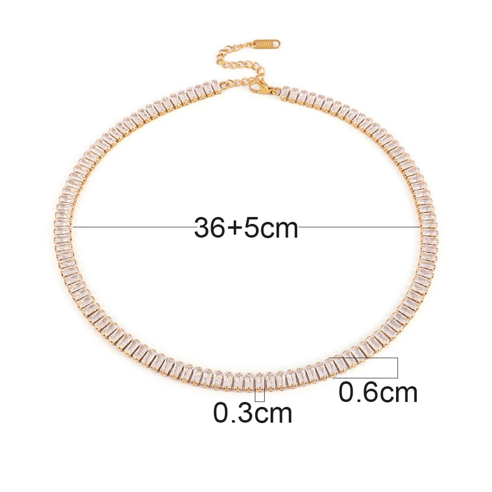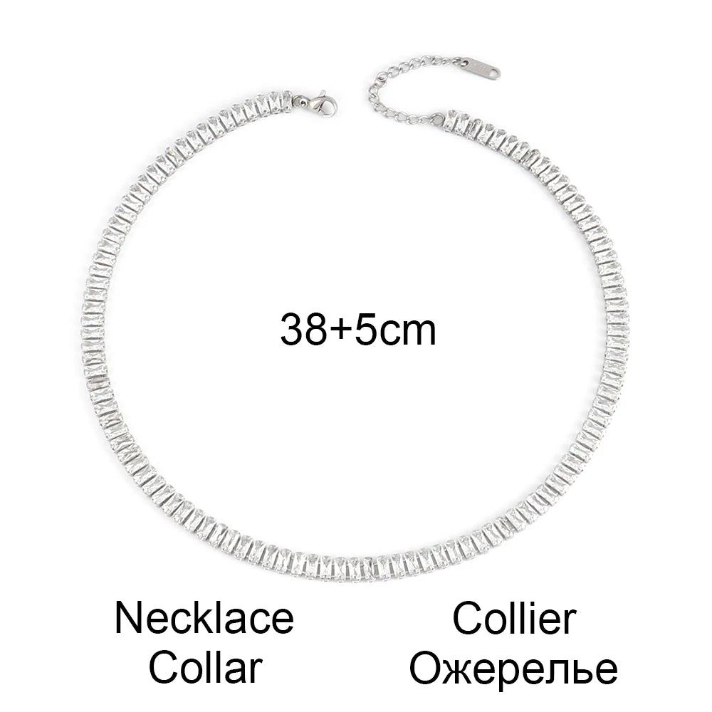 316L Stainless Steel Necklace For Women Tennis Chain Necklace Square Cubic Zirconia Chain Choker Crystal Jewelry Gift Wholesale