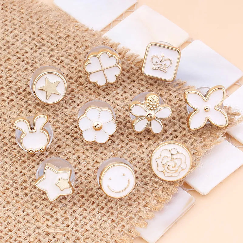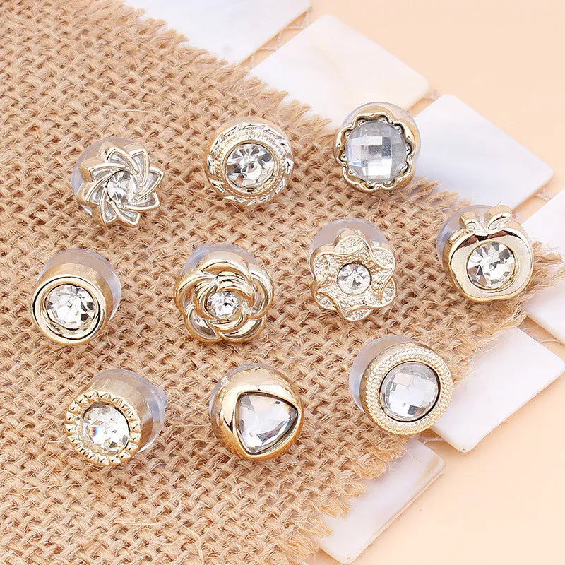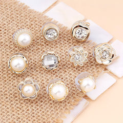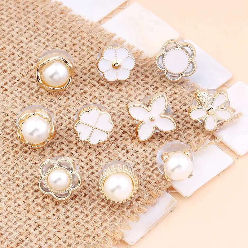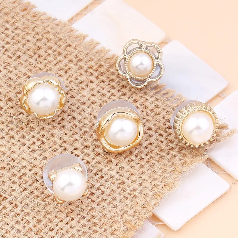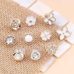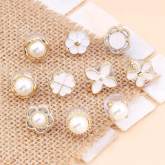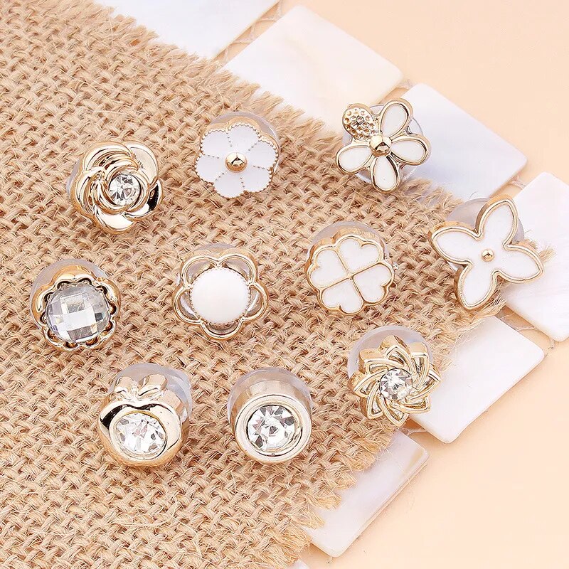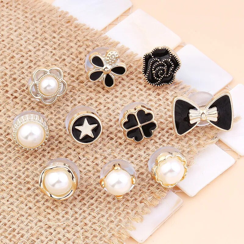 5/10Pcs Free Sewing Pearl Rhinestone Button Brooches Pins Prevent Exposure Buttons Badge Coat Clothes Cufflink Shirt Button Set