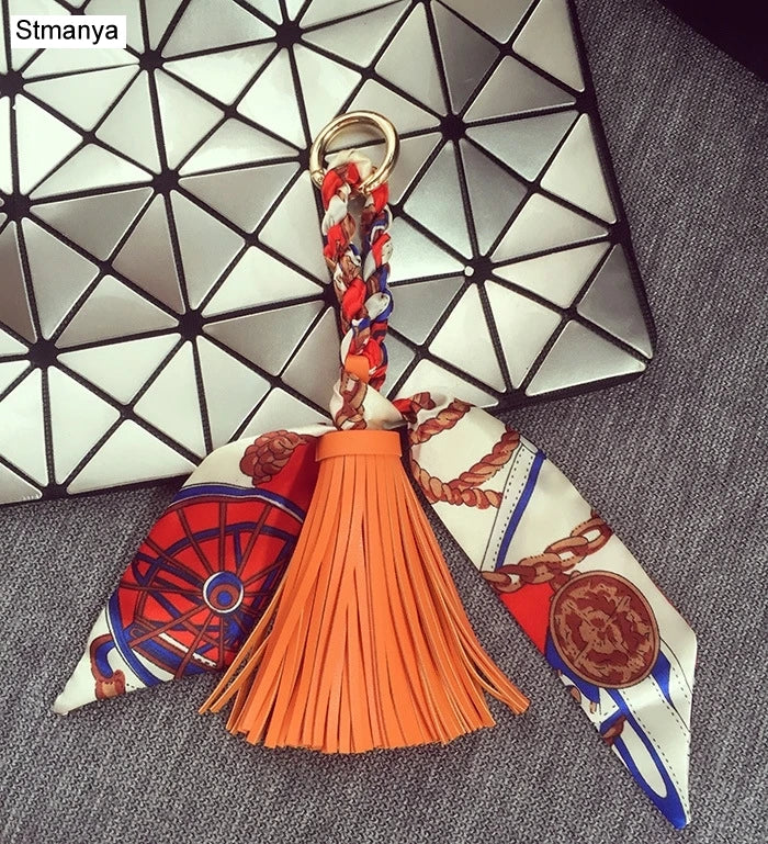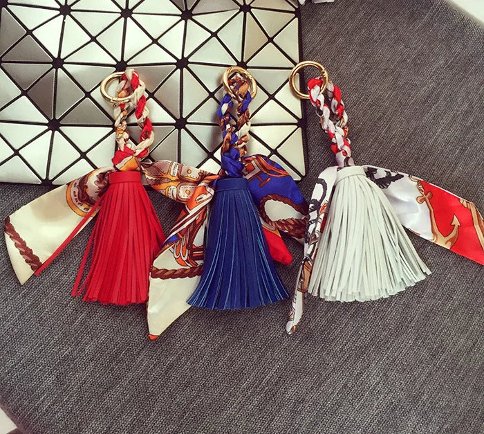Animal Plush keychain Fashion Women pom pom Fur key chain Scarf leather tassel Fashion Phone Key Holder K1258