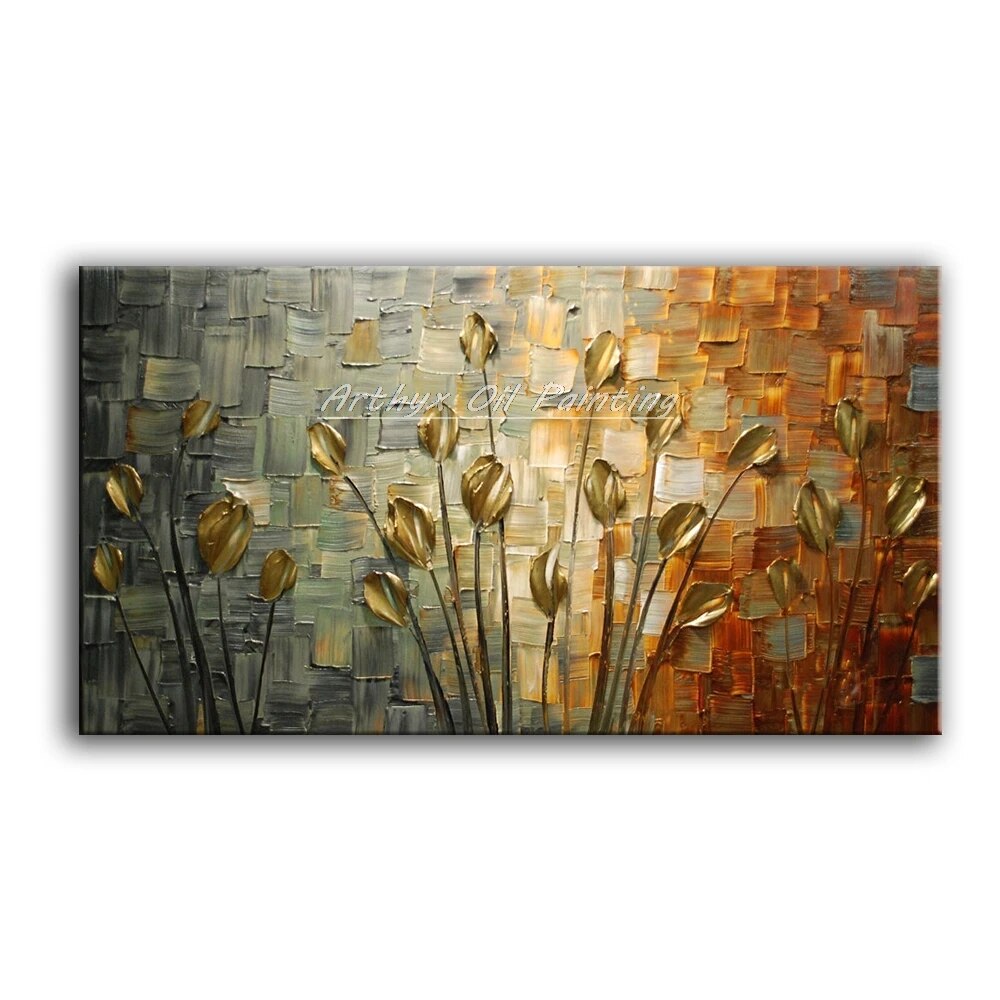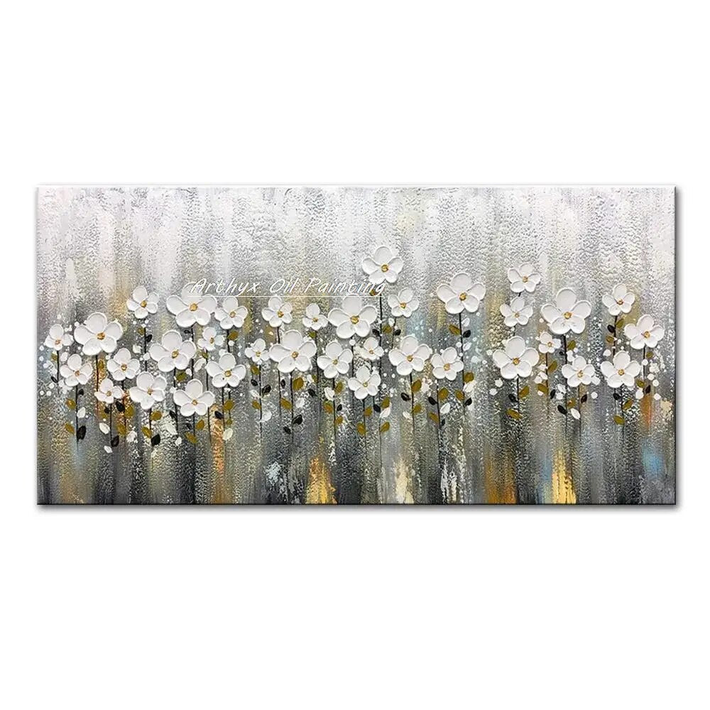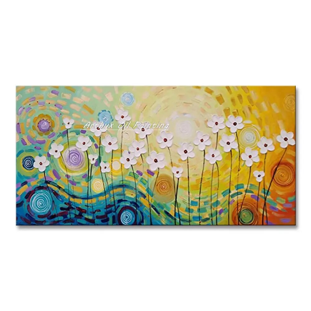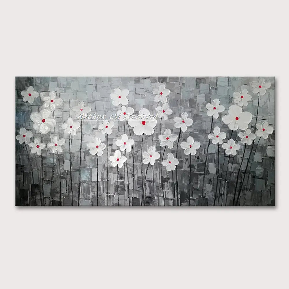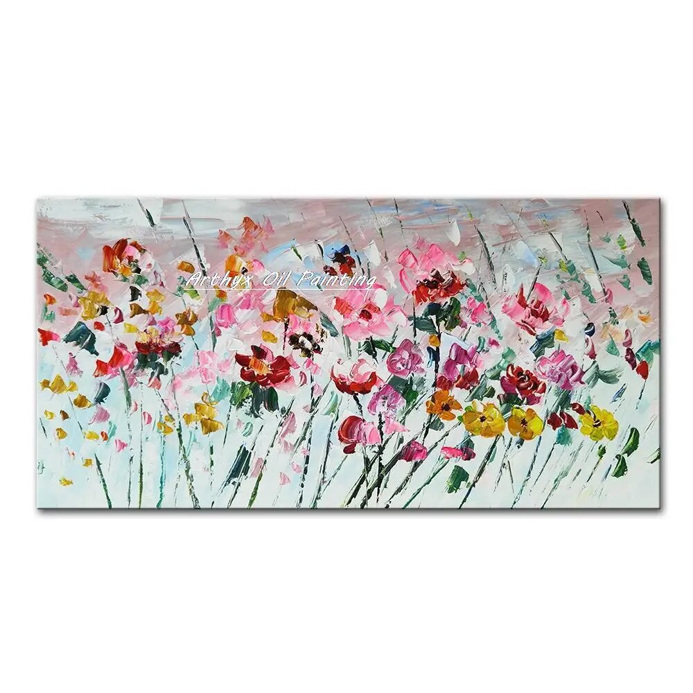 Arthyx,Pop Art Hand Painted Thick Texture Flowers Oil Painting On Canvas,Modern Abstract Wall Picture For Living Room Home Decor