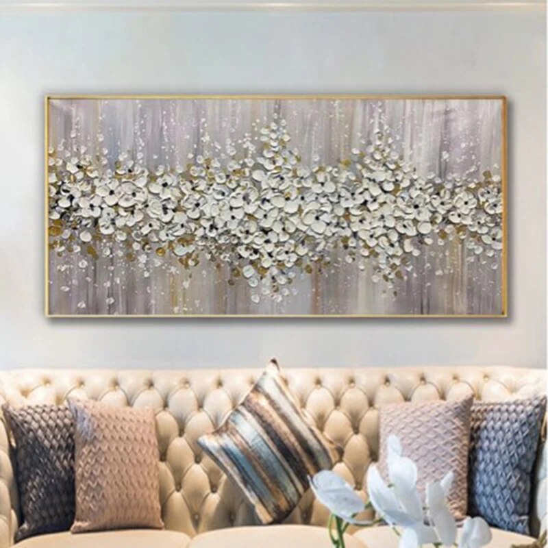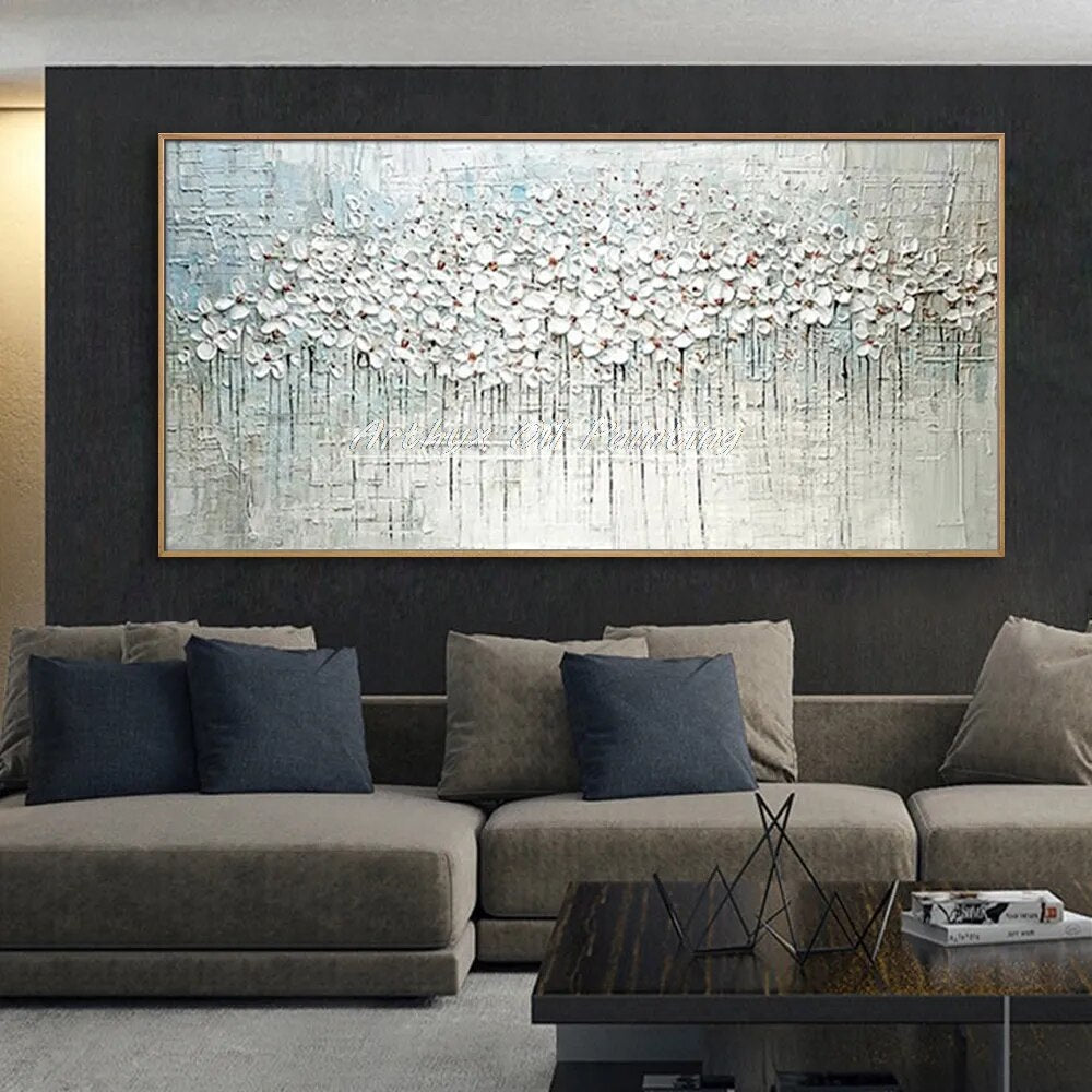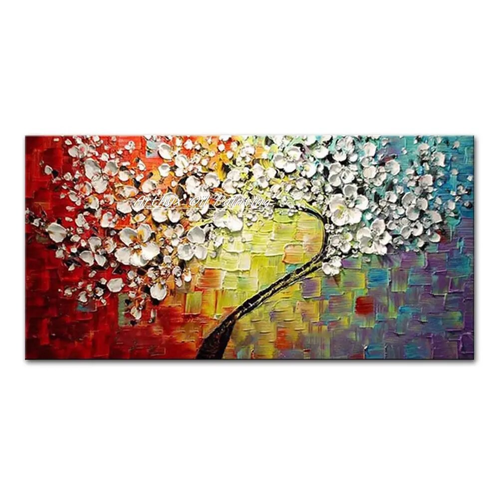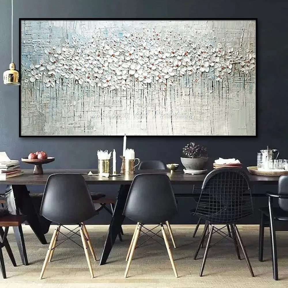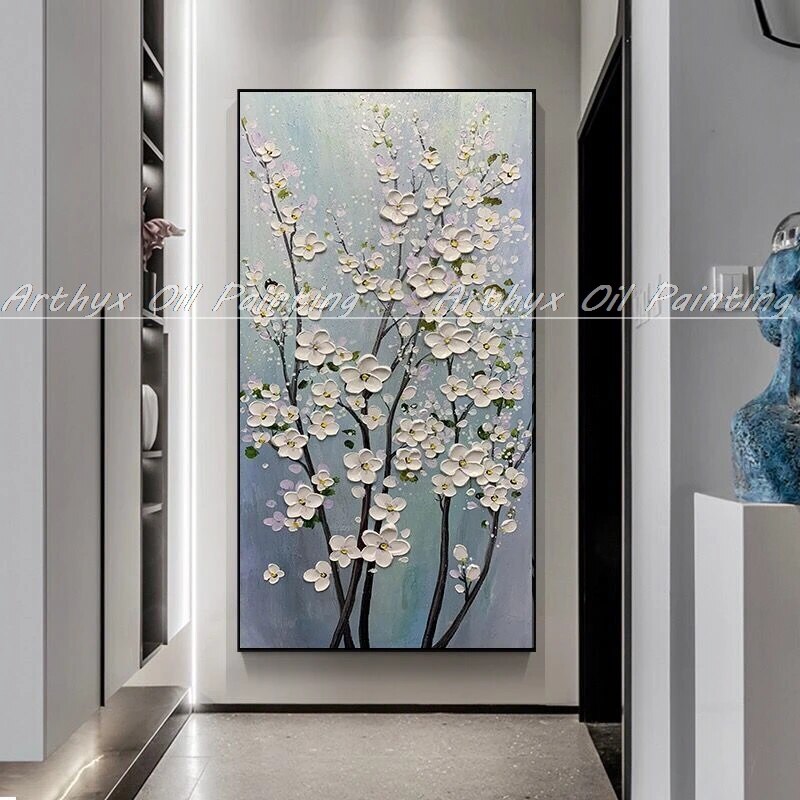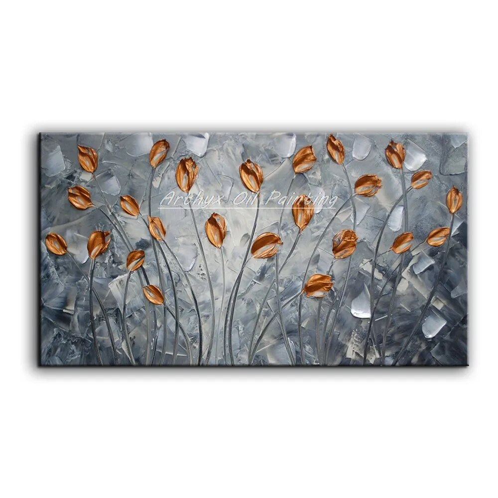 Arthyx,Pop Art Hand Painted Thick Texture Flowers Oil Painting On Canvas,Modern Abstract Wall Picture For Living Room Home Decor