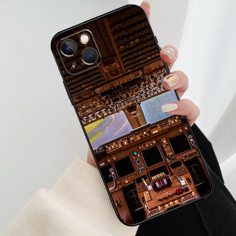 Aviation Aeroplane Pilot Cockpit Phone Case For iPhone 11 12 13 14 15 Pro XS Max Mini Cover For iPhone X XR 7 8 Plus Back Case