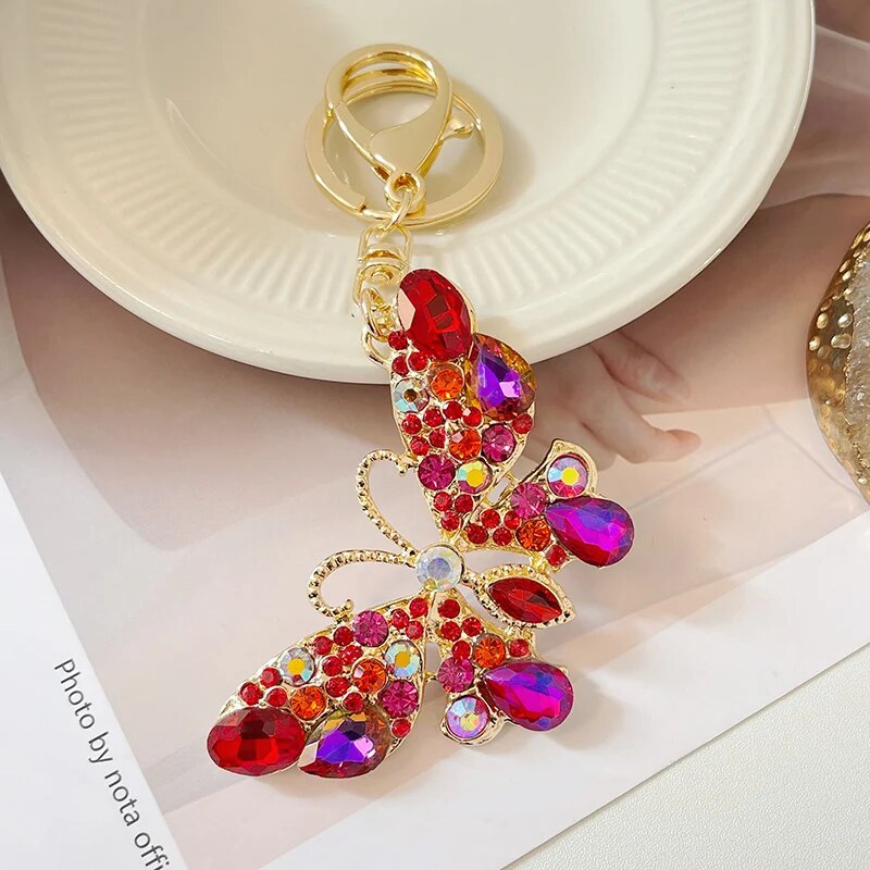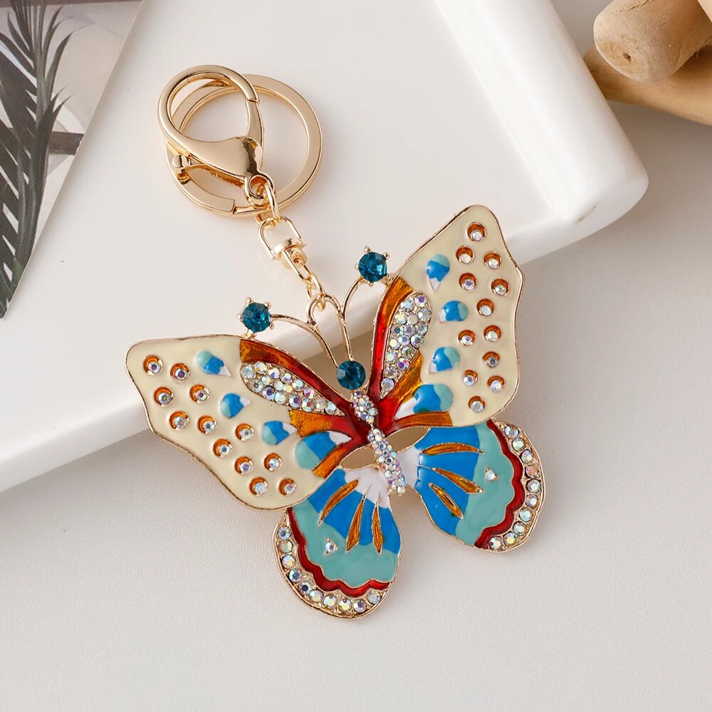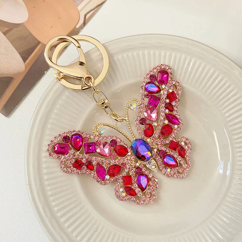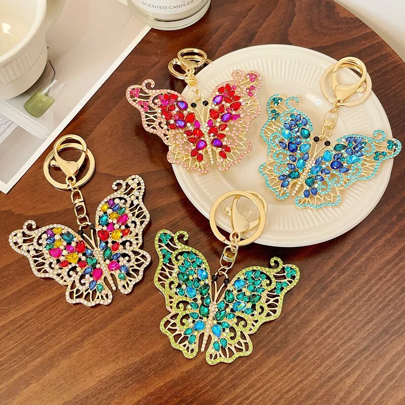 EASYA 2024 New Butterfly Keychain Collection Rhinestone Crystal Inlaid Car Pendant Handicrafts