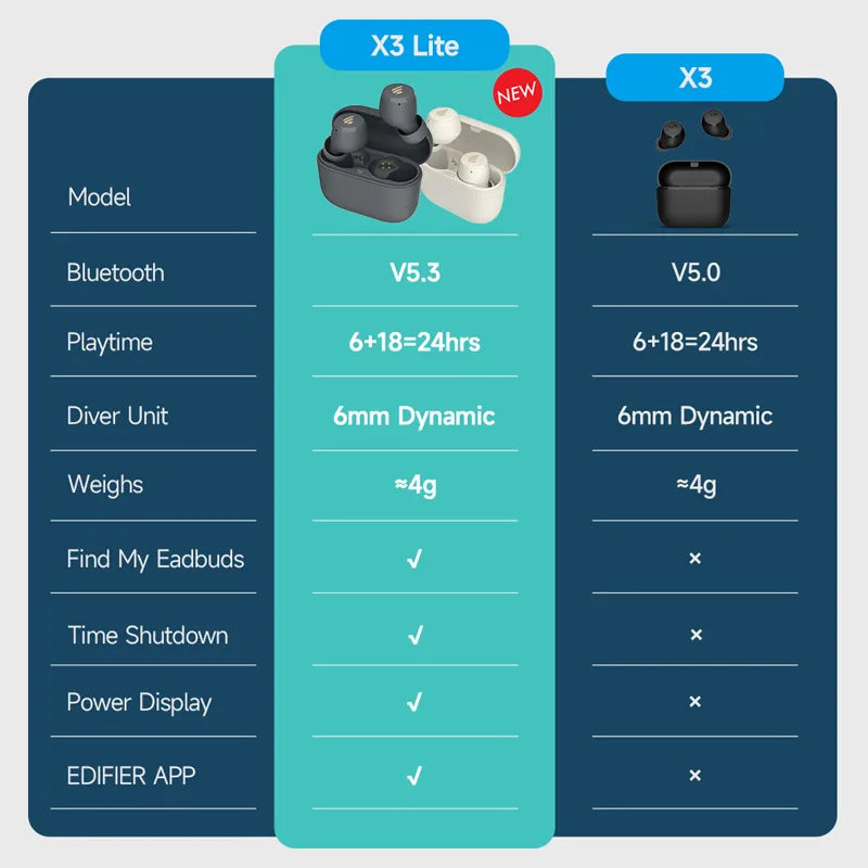 EDIFIER X3 X3 Lite TWS Wireless Bluetooth Earphone Bluetooth 5.3 Voice Assistant touch control up to 24hrs playback EQ Preset