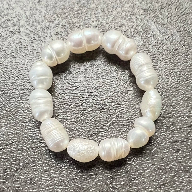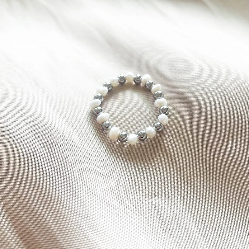Elegant Freshwater Pearl Ring With Stainless Steel Beads Fashion Handmade Wedding Rings For Women Girls