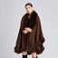Europe America New Imitation Otter Rabbit Fur Collar Hooded Imitation Cashmere Loose Ponchos Women Capes Khaki Cloak