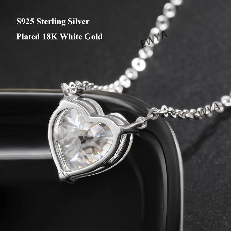 EWYA Luxury 4CT 10*10mm Heart Cut D Color Moissanite Pendant Necklace for Women S925 Silver Pass Diamond Test Chain Necklaces