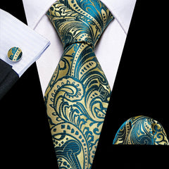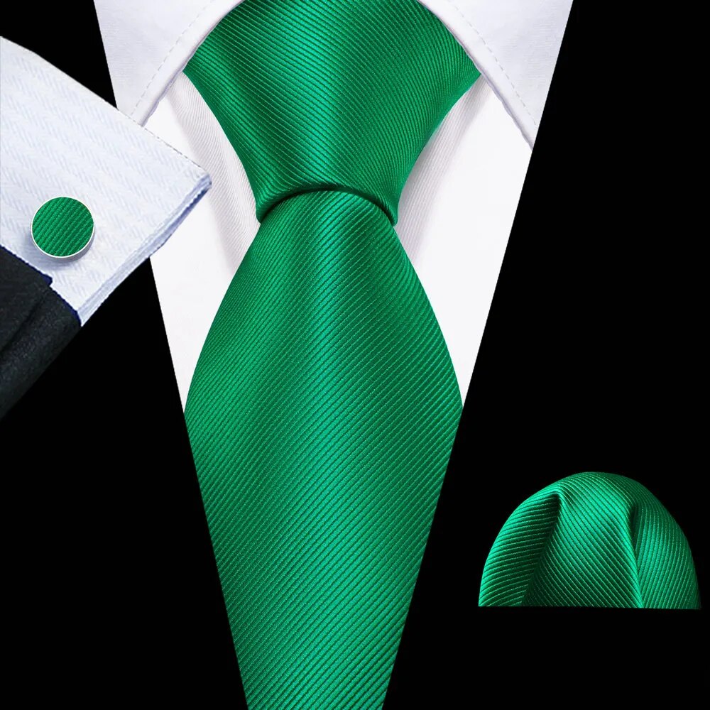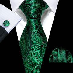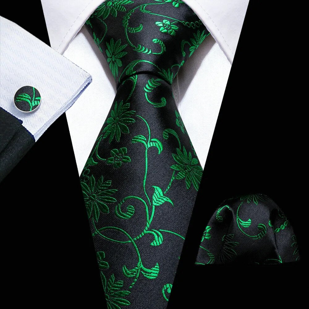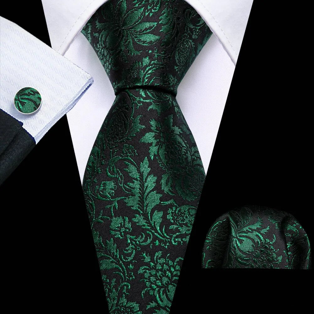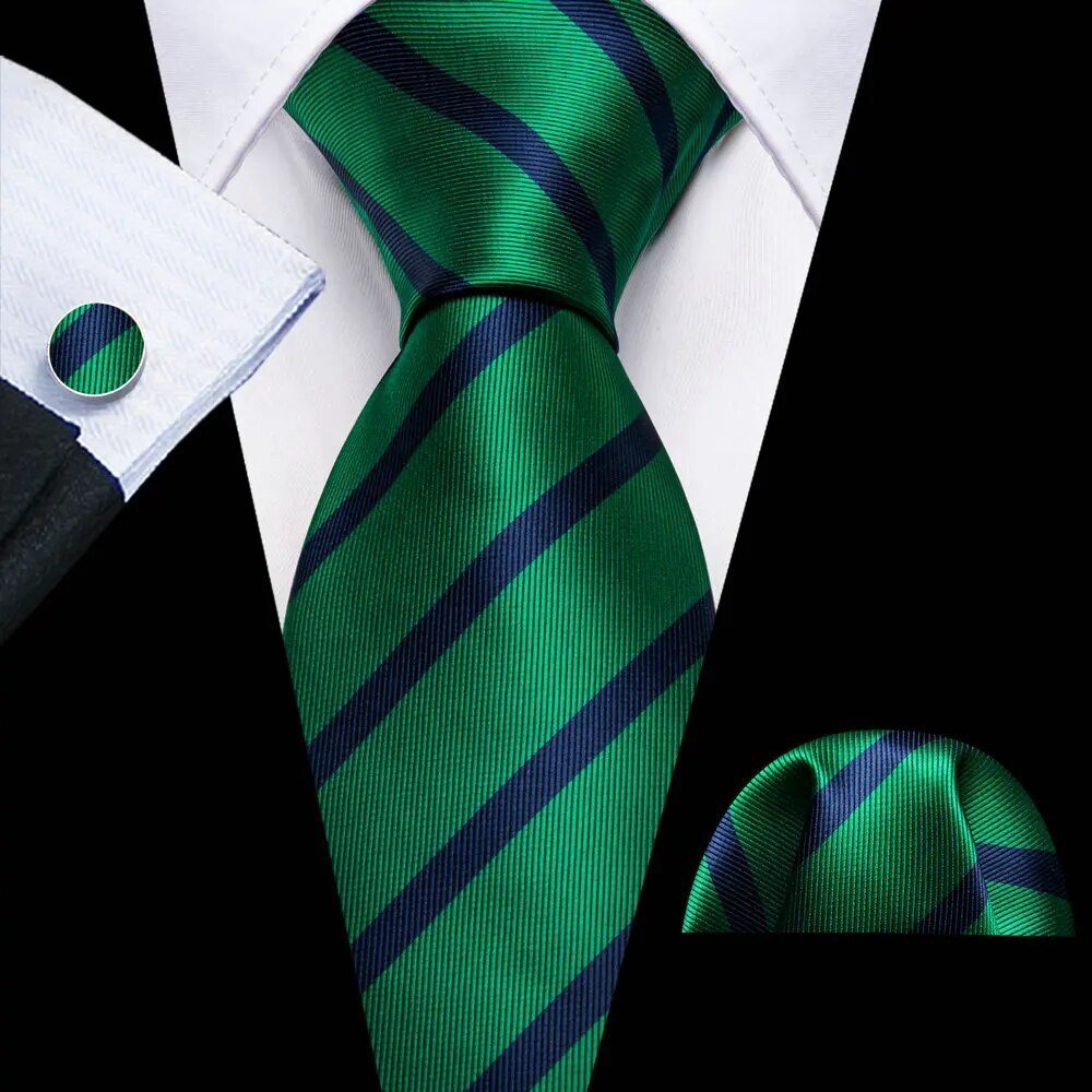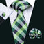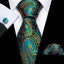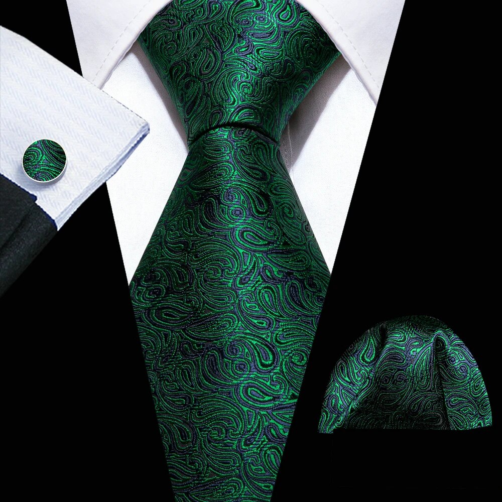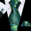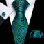 Fashion Silk Men Tie Green Teal Blue Solid Paisley Striped Plaid Floral Animal Necktie Handkerchief Cufflinks Set Barry. Wang