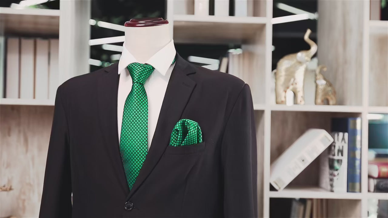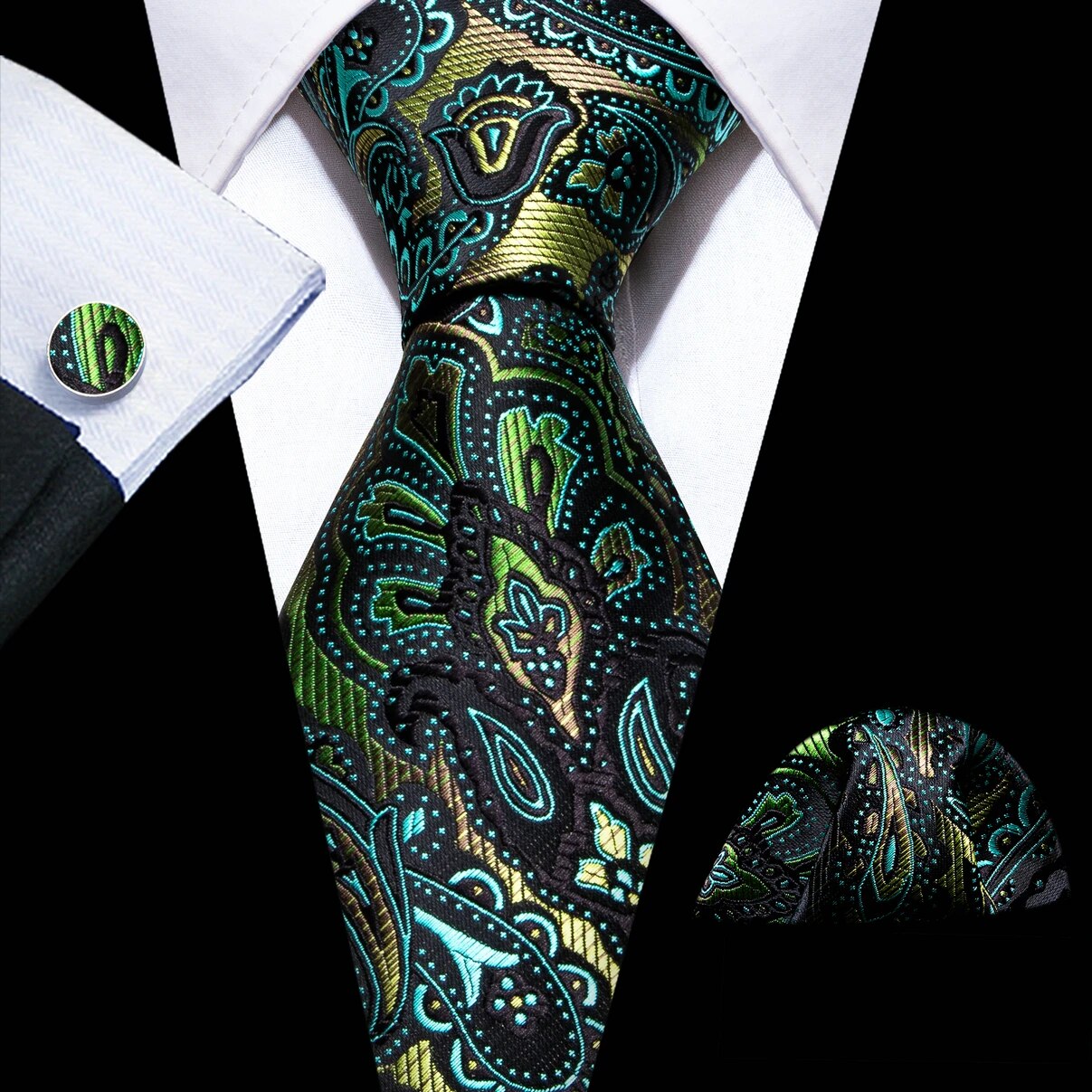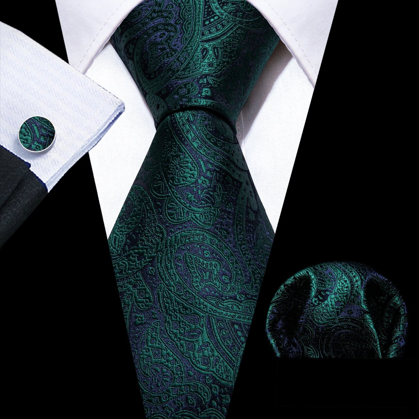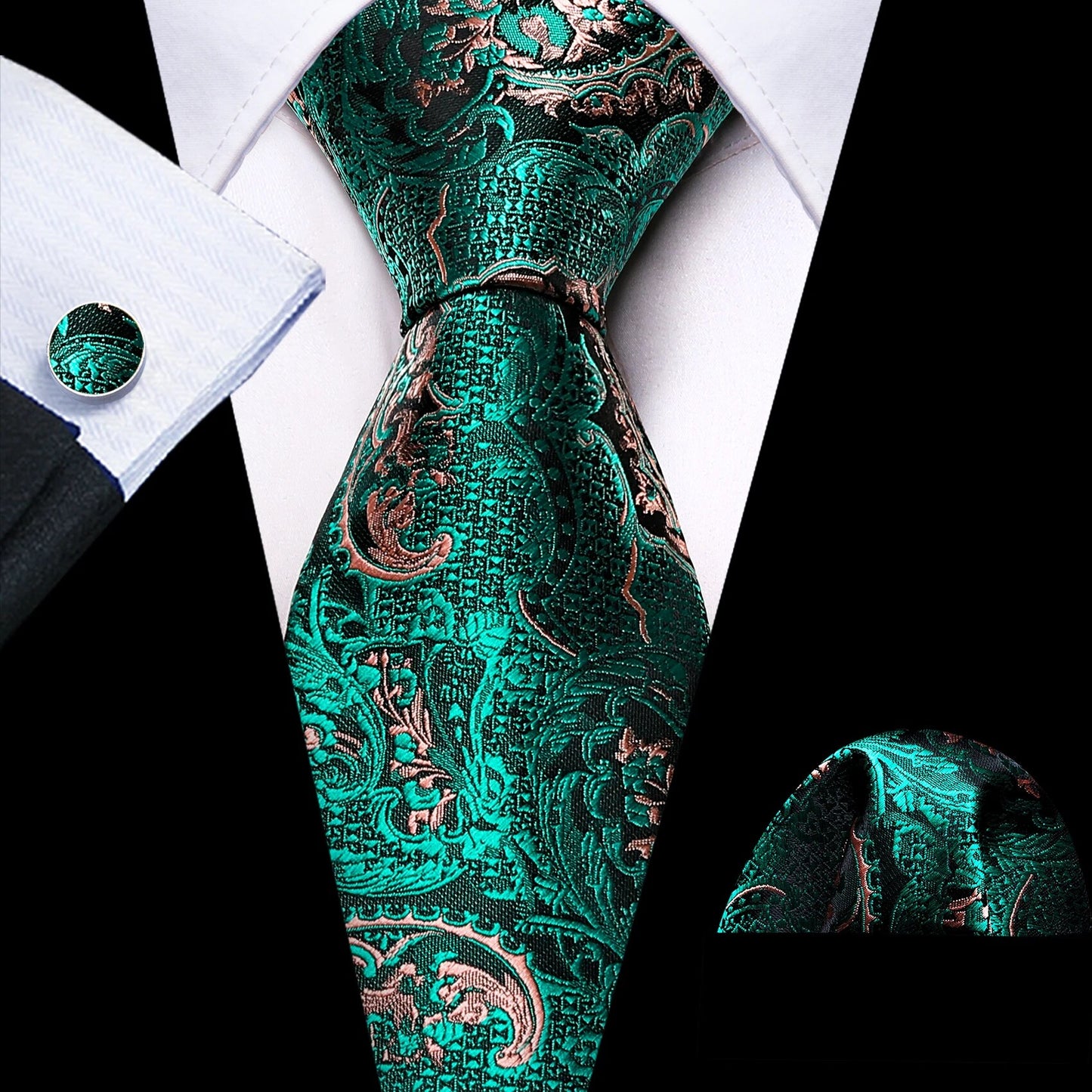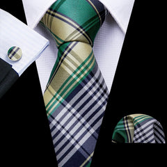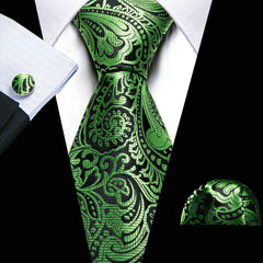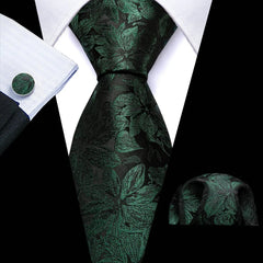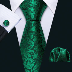 Fashion Silk Men Tie Green Teal Blue Solid Paisley Striped Plaid Floral Animal Necktie Handkerchief Cufflinks Set Barry. Wang
