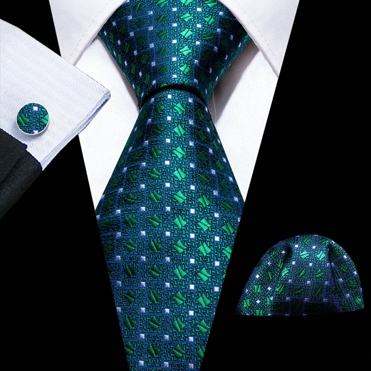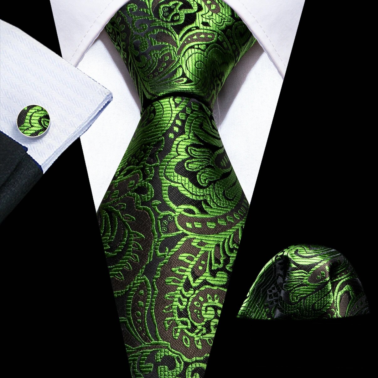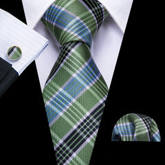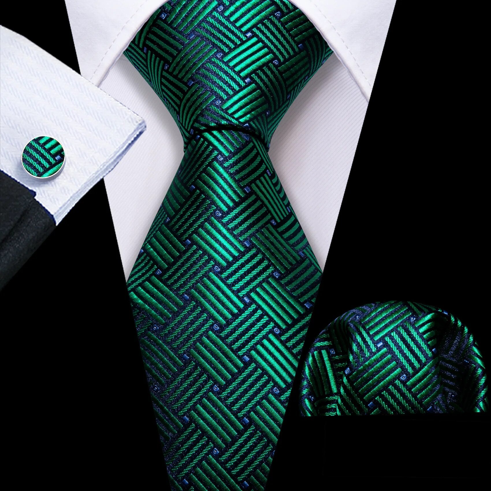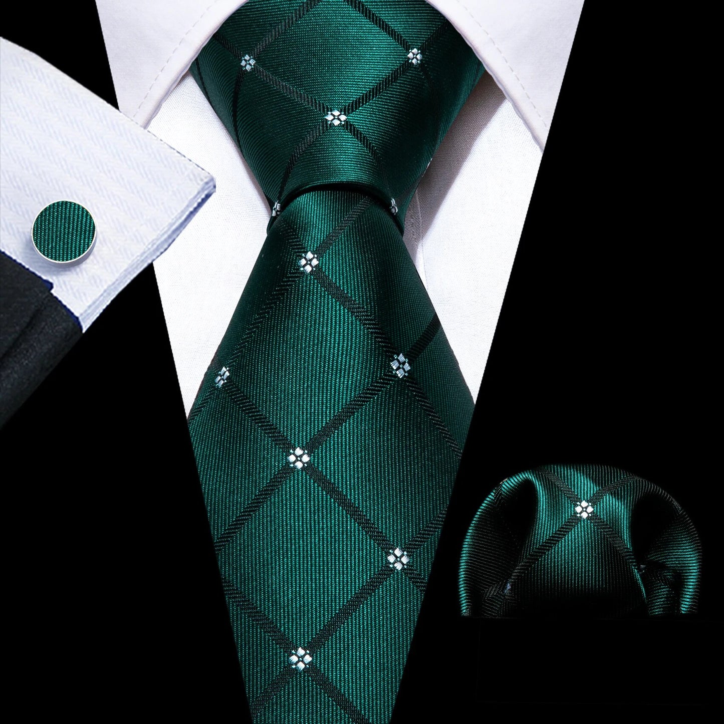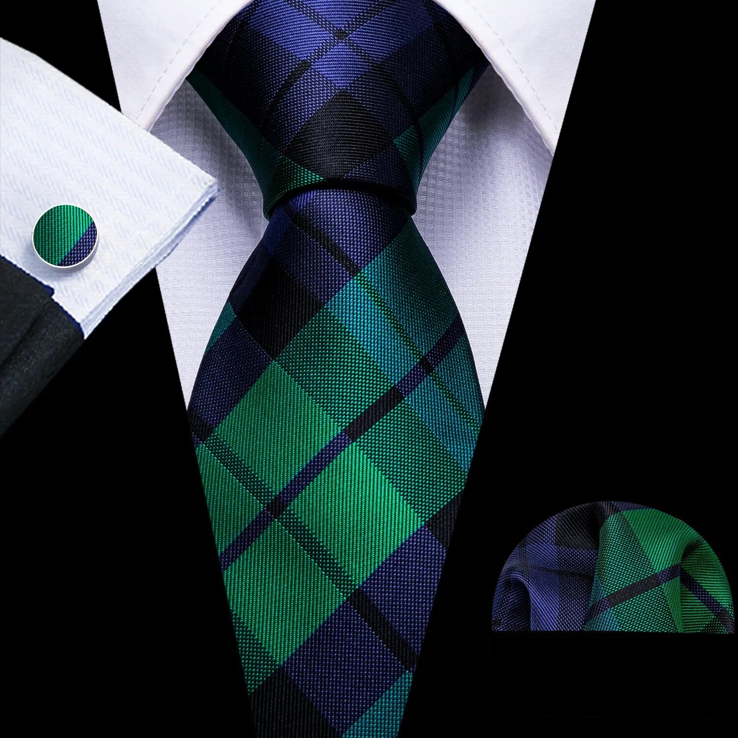 Fashion Silk Men Tie Green Teal Blue Solid Paisley Striped Plaid Floral Animal Necktie Handkerchief Cufflinks Set Barry. Wang