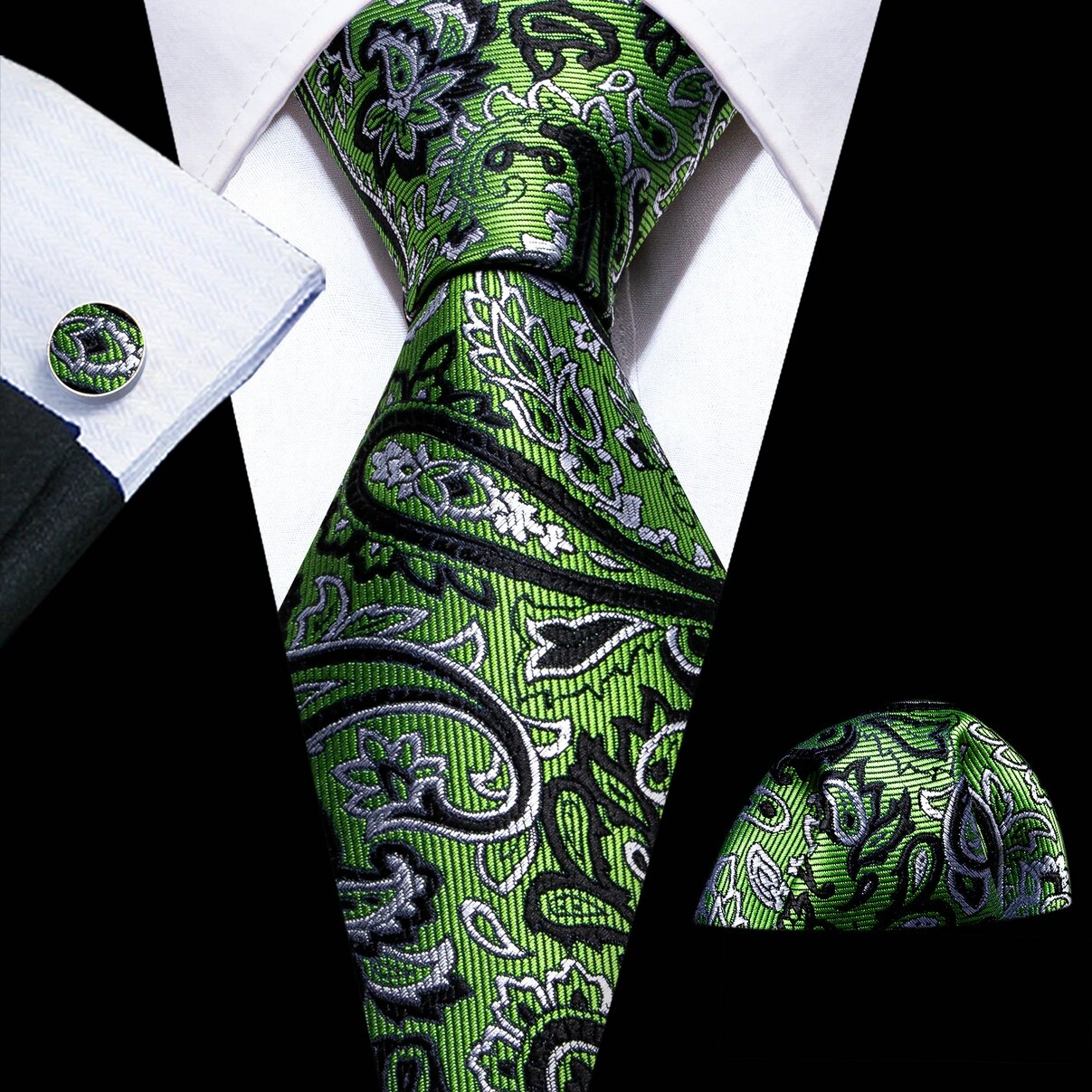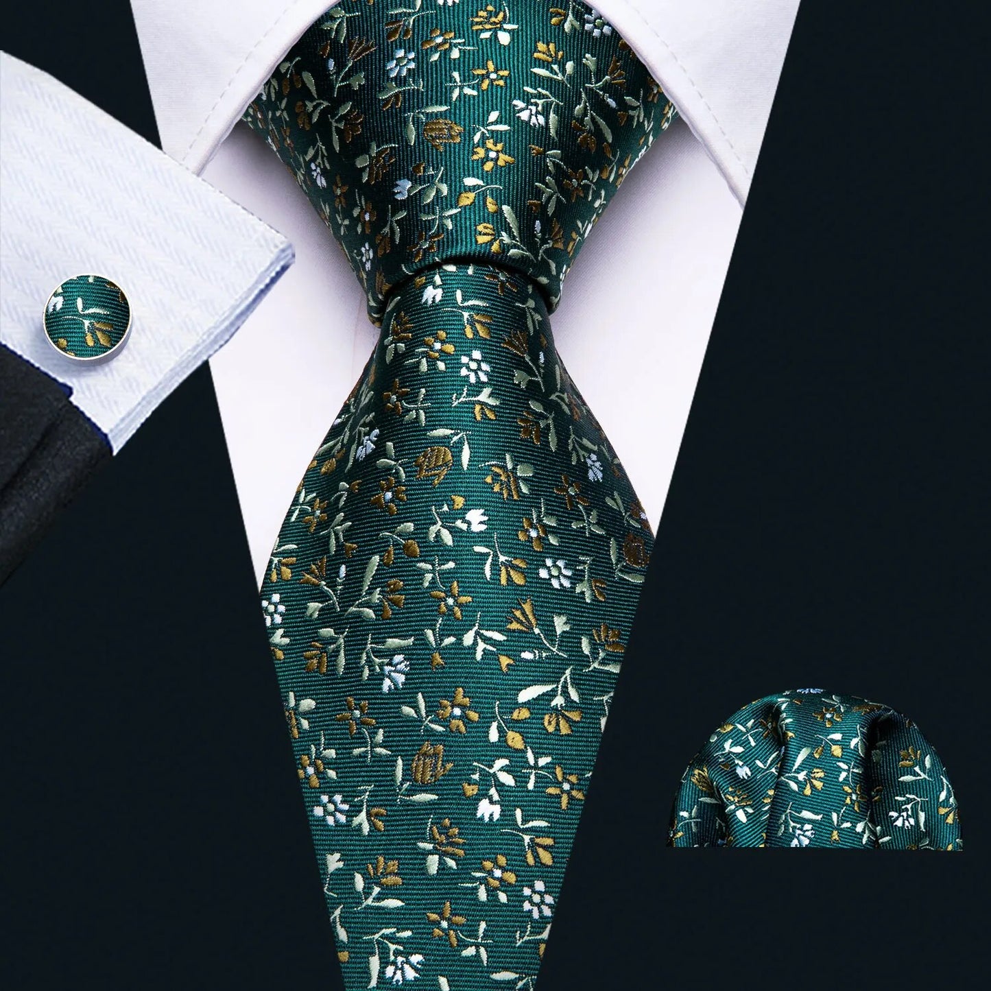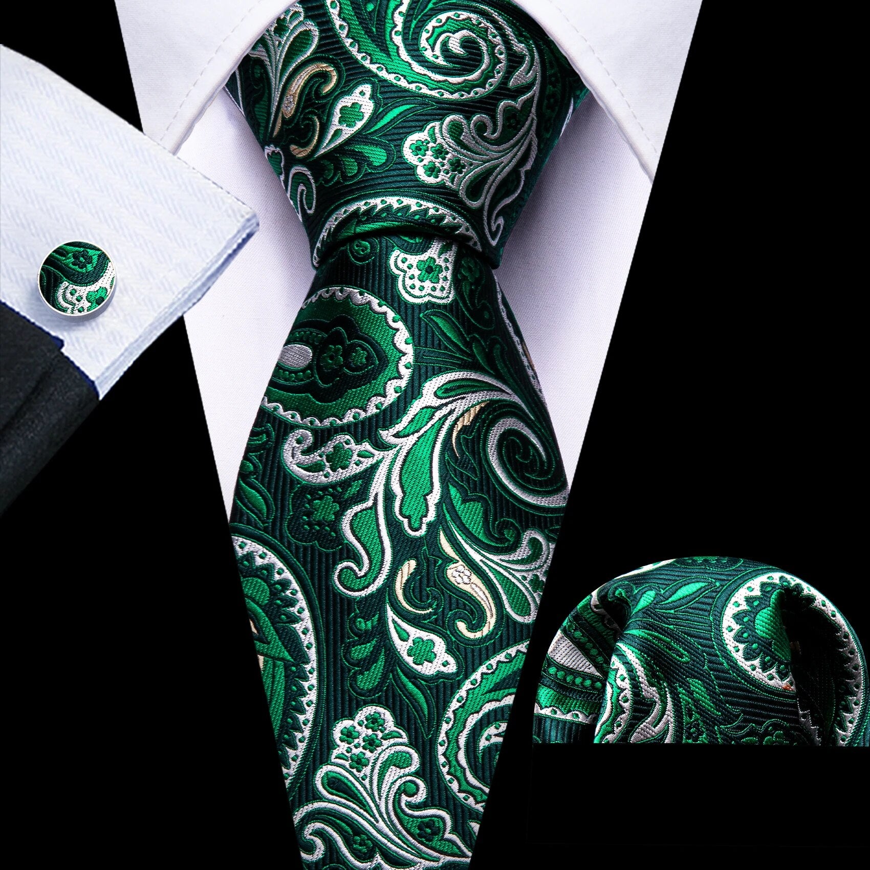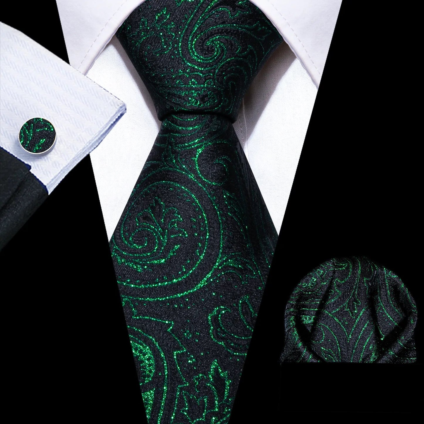 Fashion Silk Men Tie Green Teal Blue Solid Paisley Striped Plaid Floral Animal Necktie Handkerchief Cufflinks Set Barry. Wang