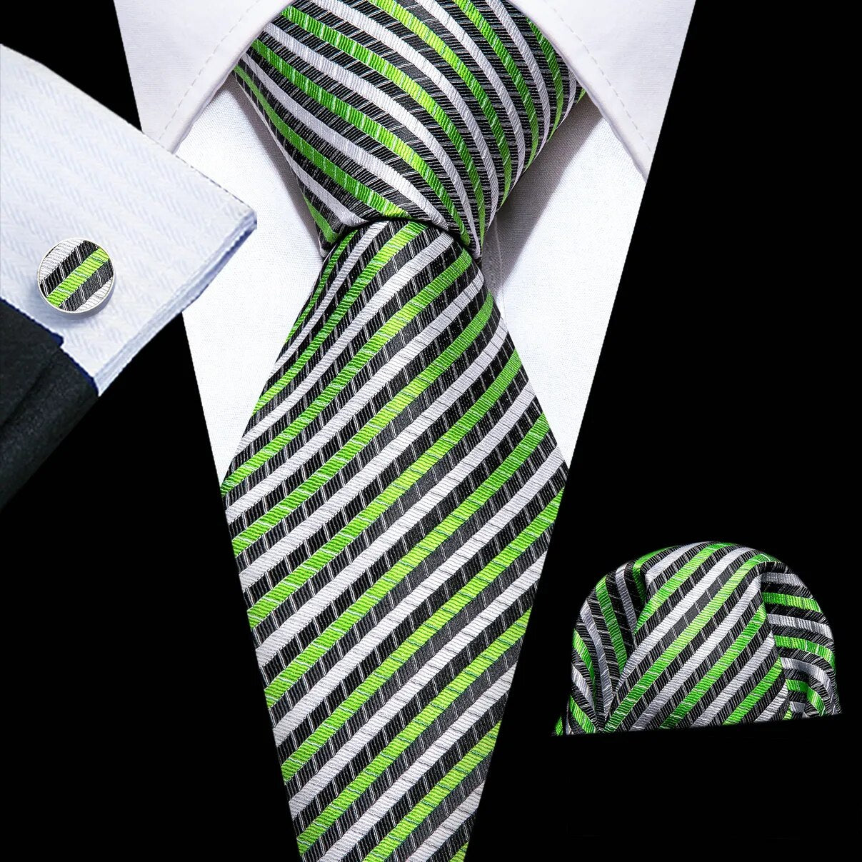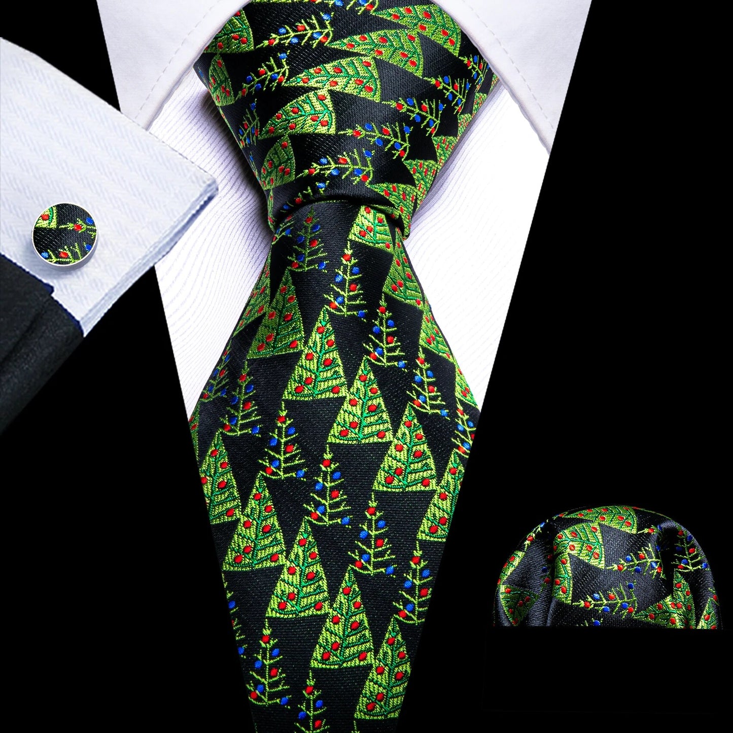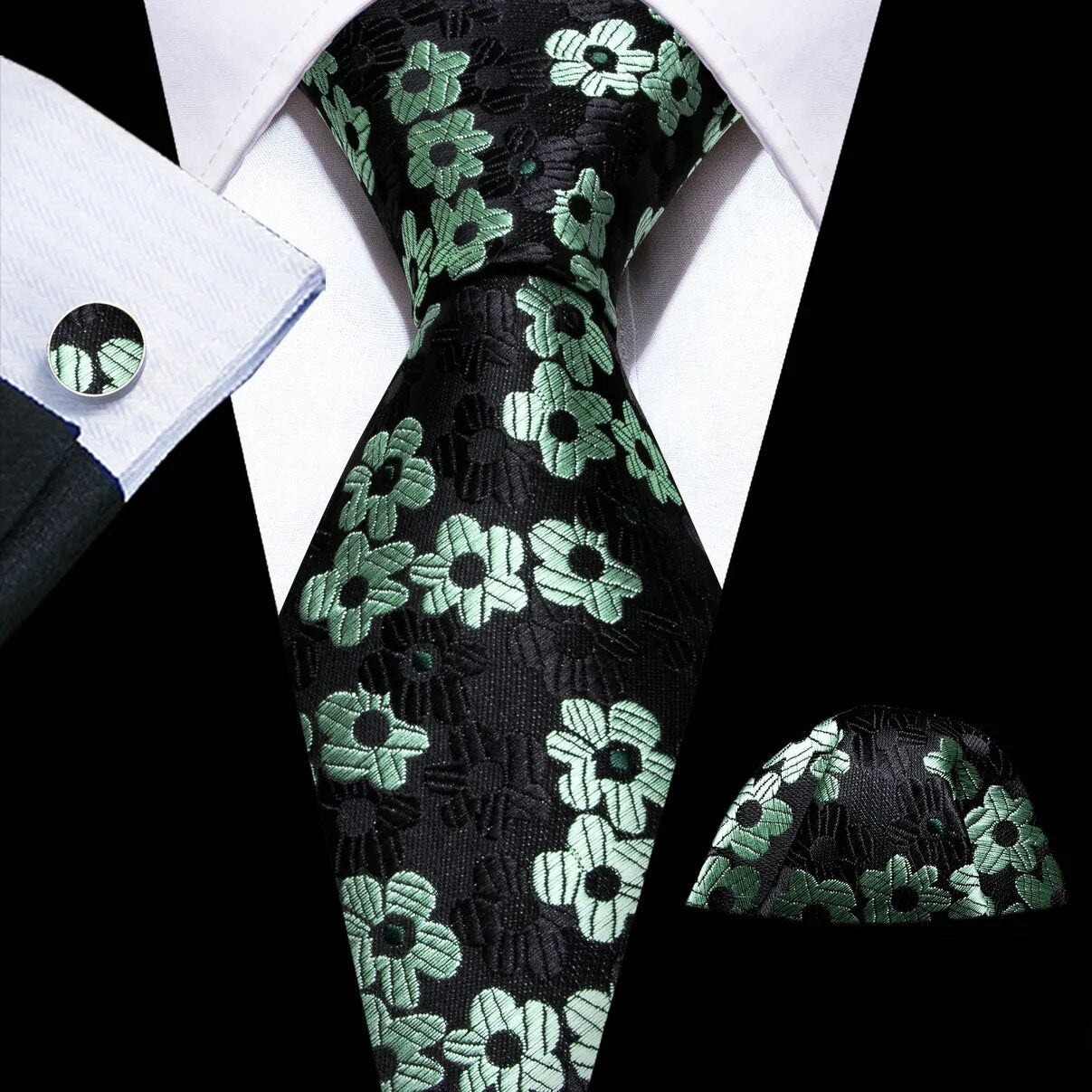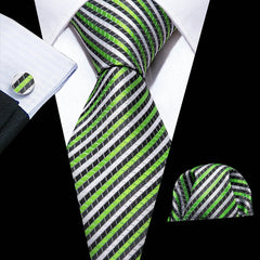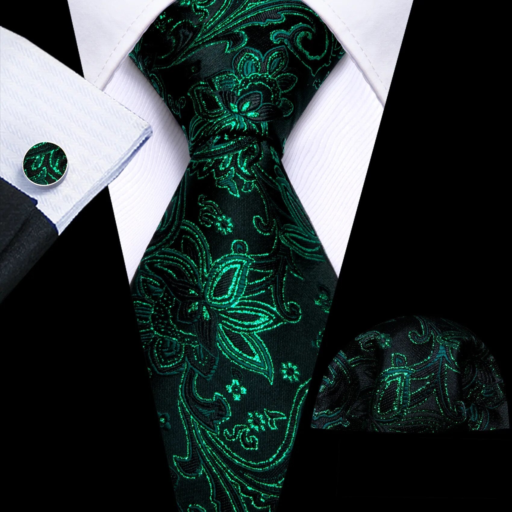 Fashion Silk Men Tie Green Teal Blue Solid Paisley Striped Plaid Floral Animal Necktie Handkerchief Cufflinks Set Barry. Wang