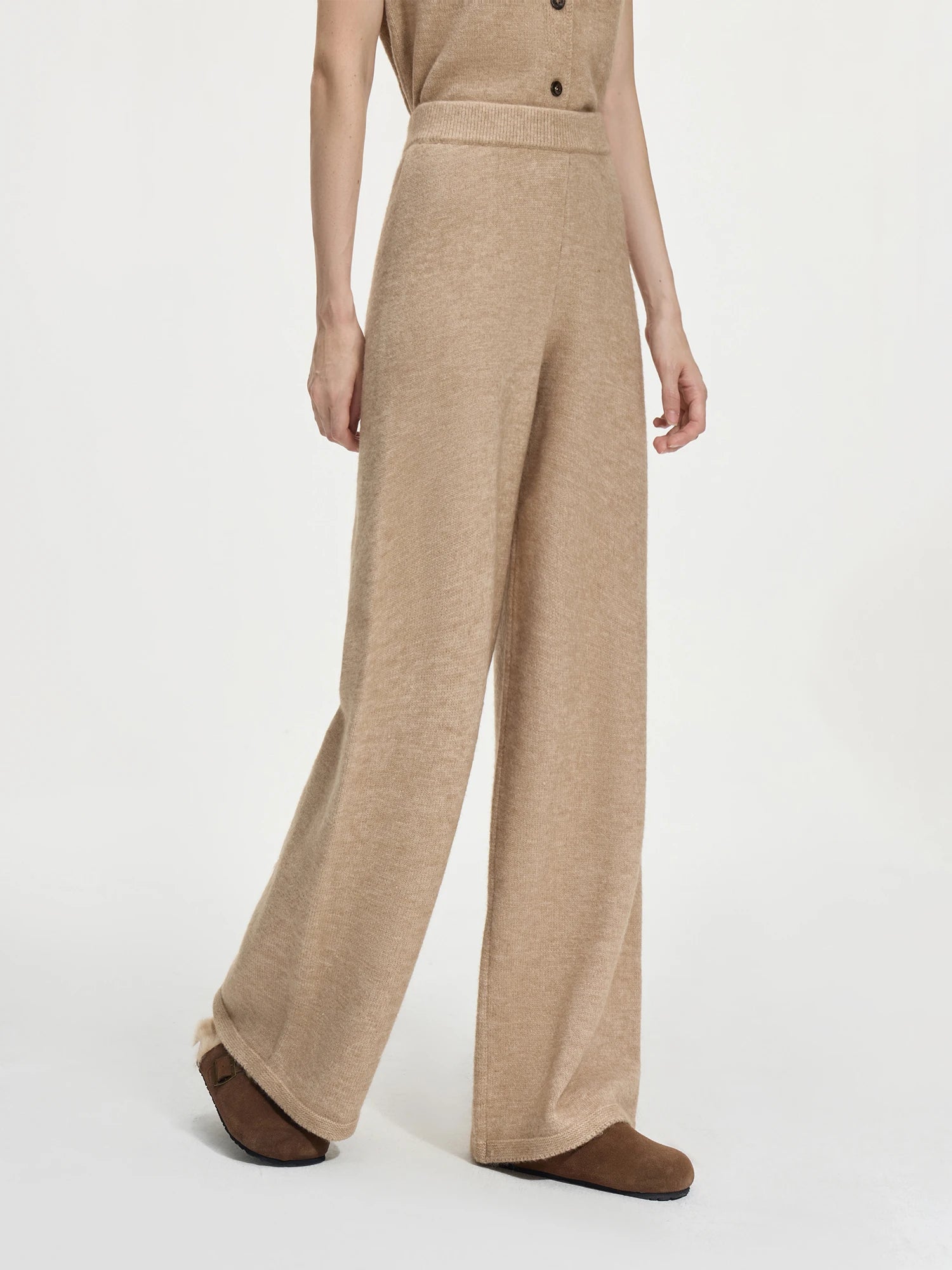 FSLE Khaki Cardigan Jacket Vest Pants Knitted Suit For Women 2024 Fall Winter New Design Soft Casual Warm Coat Vest Pants Set