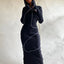 Hugcitar Long Sleeve Hooded Patchwork Skinny Maxi Dress 2021 Autumn Winter Women Fashion Streetwear Casual Outfits