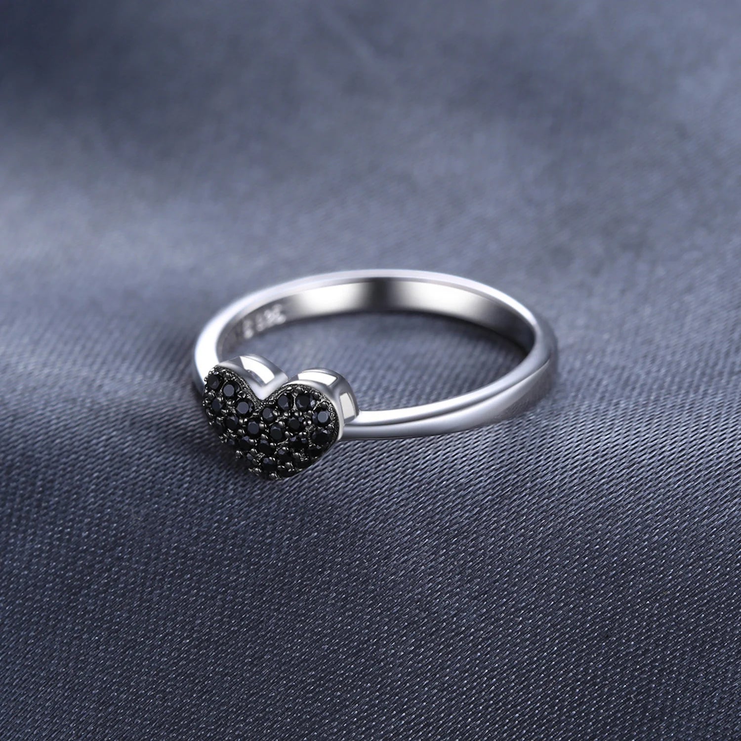 JewelryPalace Heart Love Ring 925 Sterling Silver Ring Girl Cute Natural Black Spinel Promise Ring Gemstones Jewelry for Women