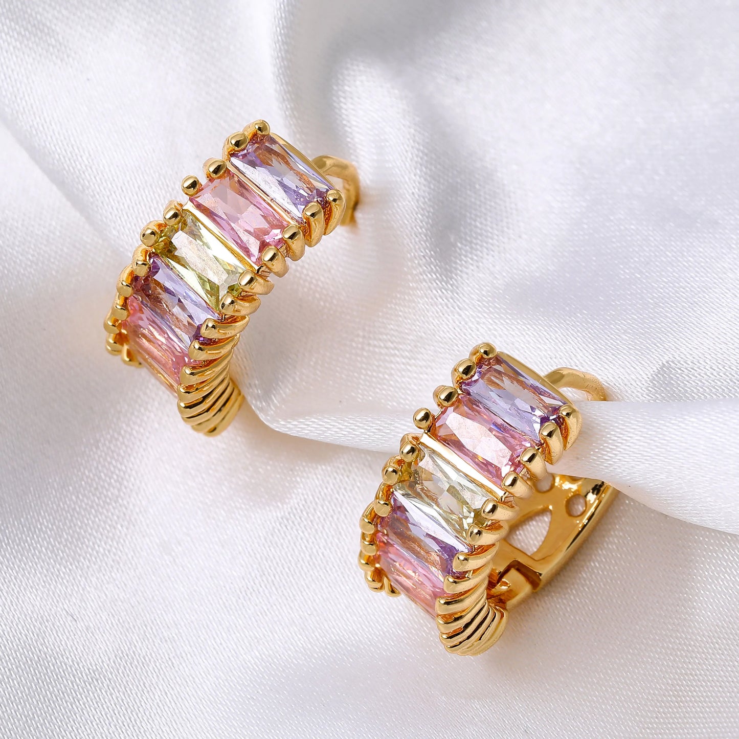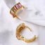 JUWANG Plated 18K Gold Hollow Color Zircon Temperament Design Earrings Women Exquisite Simple Jewelry Party Luxury Accessories