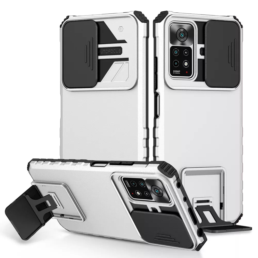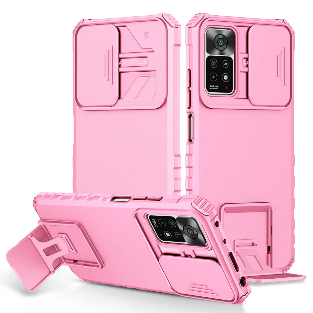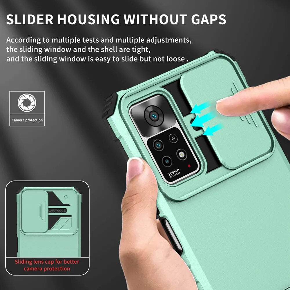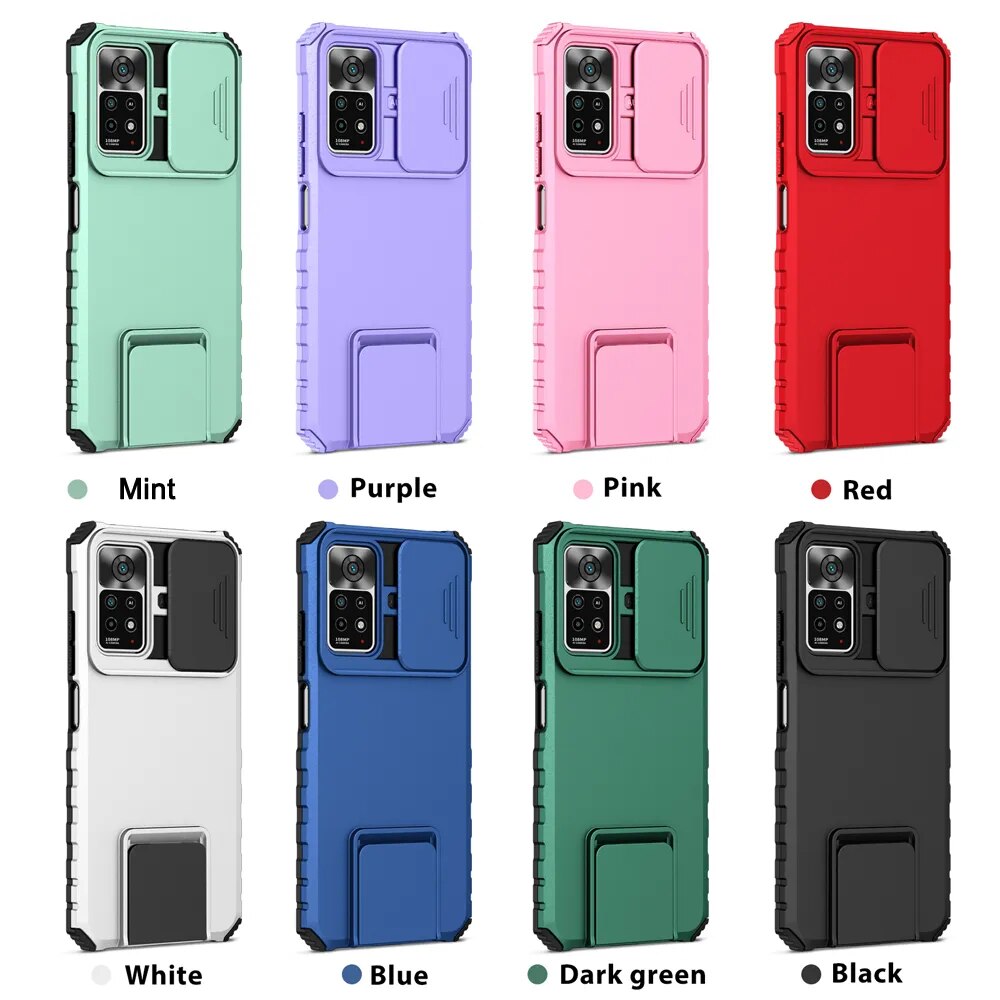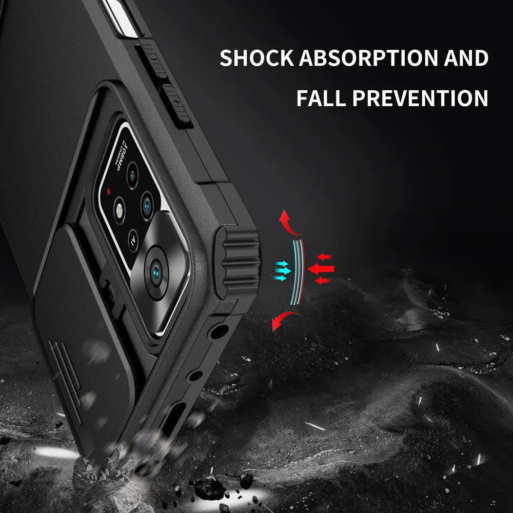 KEYSION Shockproof Case for Redmi Note 11 Pro 11S 12 5G 10 Push Pull Camera Protection Live Stand Phone Cover for Xiaomi 11T Pro
