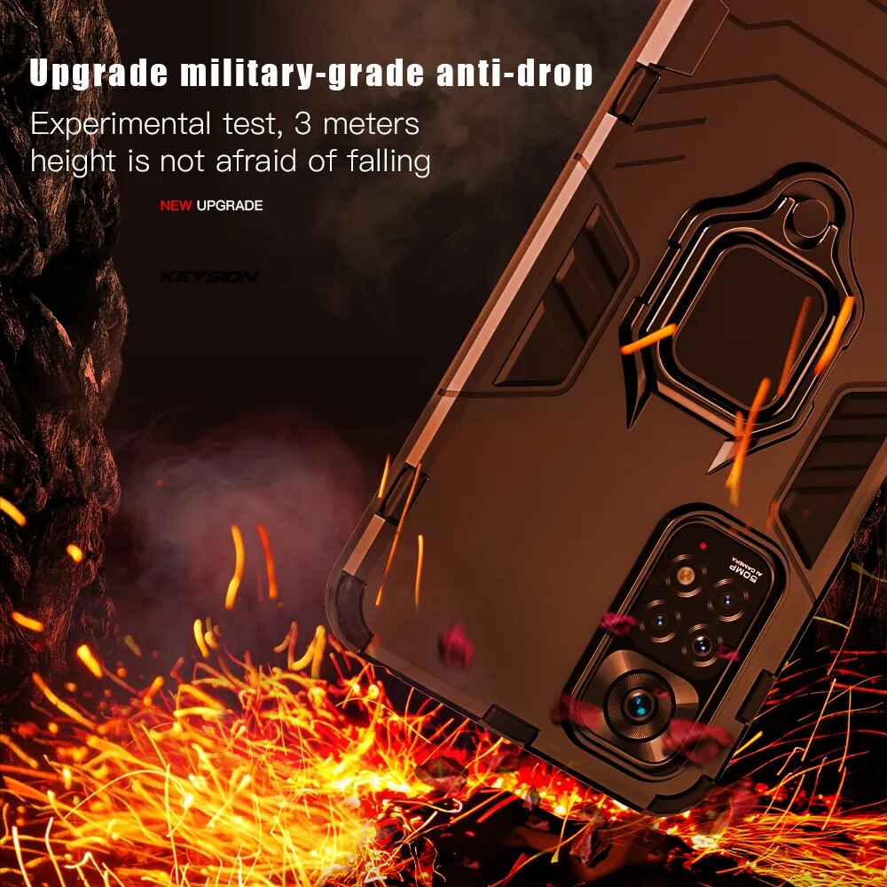 KEYSION Shockproof Case for Redmi Note 11 Pro 5G 11S 10S 9 S 8 Pro Ring Stand Phone Back Cover for Xiaomi Redmi 9 9T 9C 10C 10A