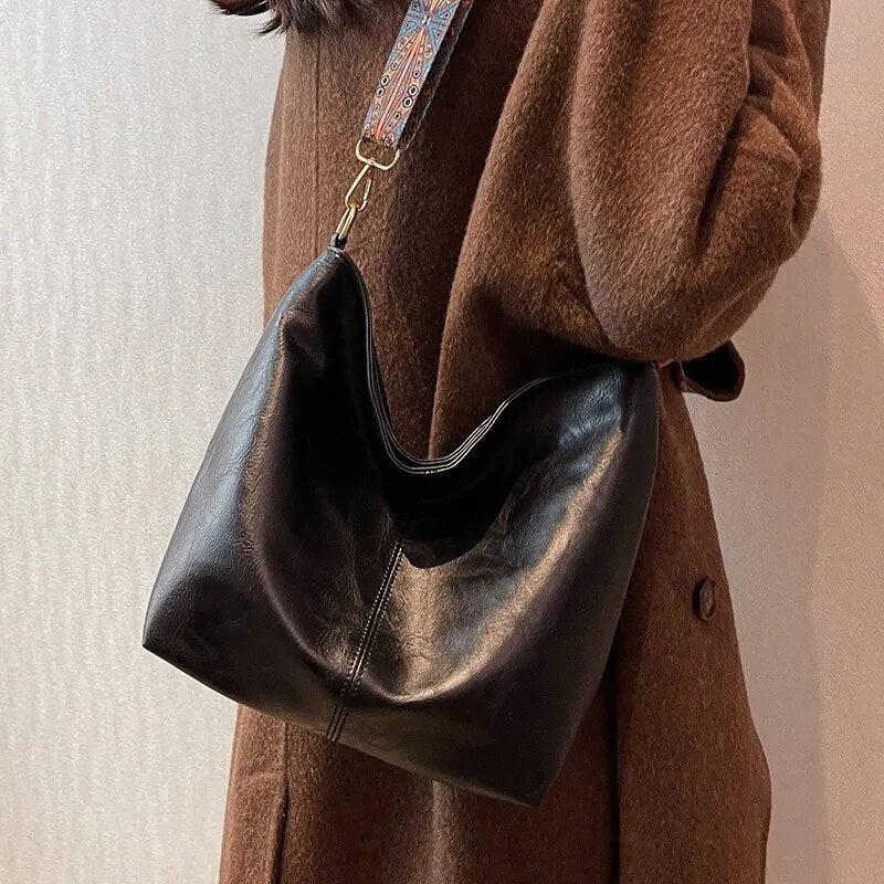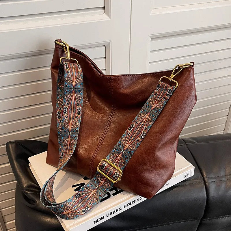 Large Capacity Bag Women's New Fashion Shoulder Bag Retro Versatile Broadband Crossbody Tote Bag Geometric Strap Hobo Bag