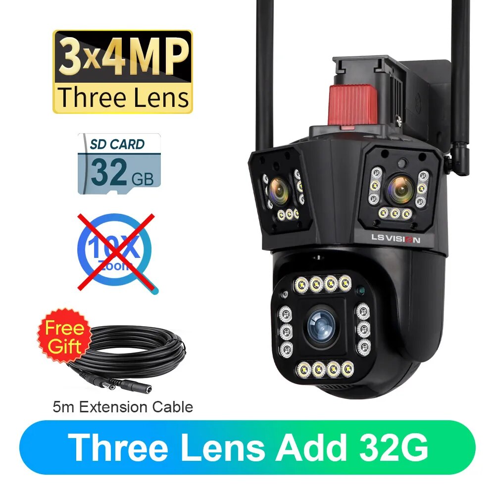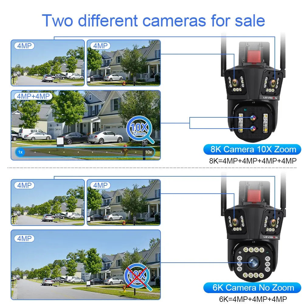 LS VISION 8K Outdoor Wireless Wifi Security Camera 10X Optical Zoom Auto Tracking 6K PTZ 4 Lens 3 Screens IP CCTV Cam Waterproof