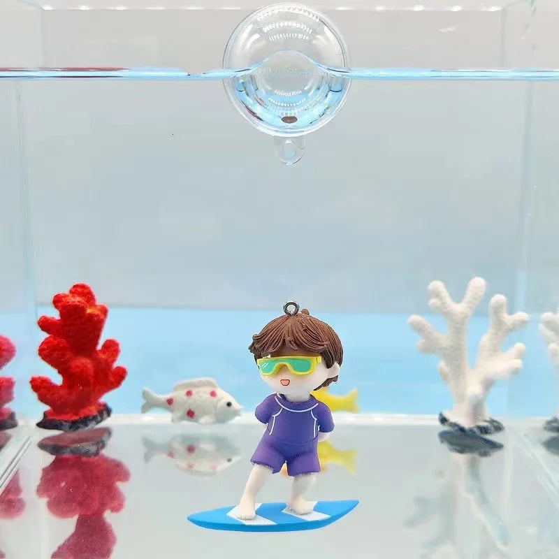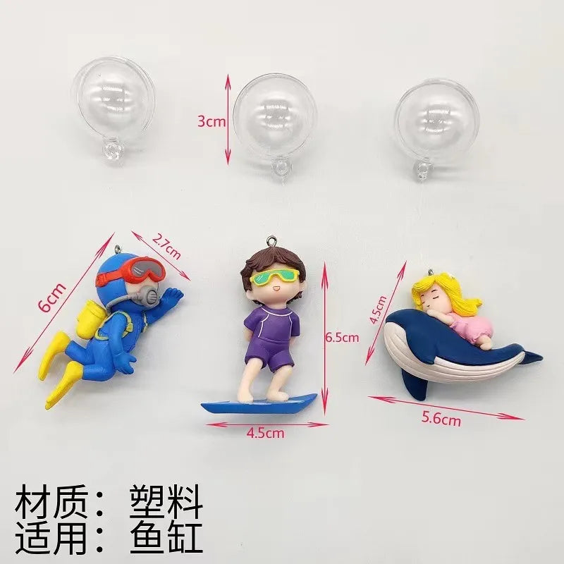 Mini Aquarium Floating Decor Accessories Cute Diver Surf Boy Whale Girl Anime Figure Decoration Fish Tank Landscaping Ornament