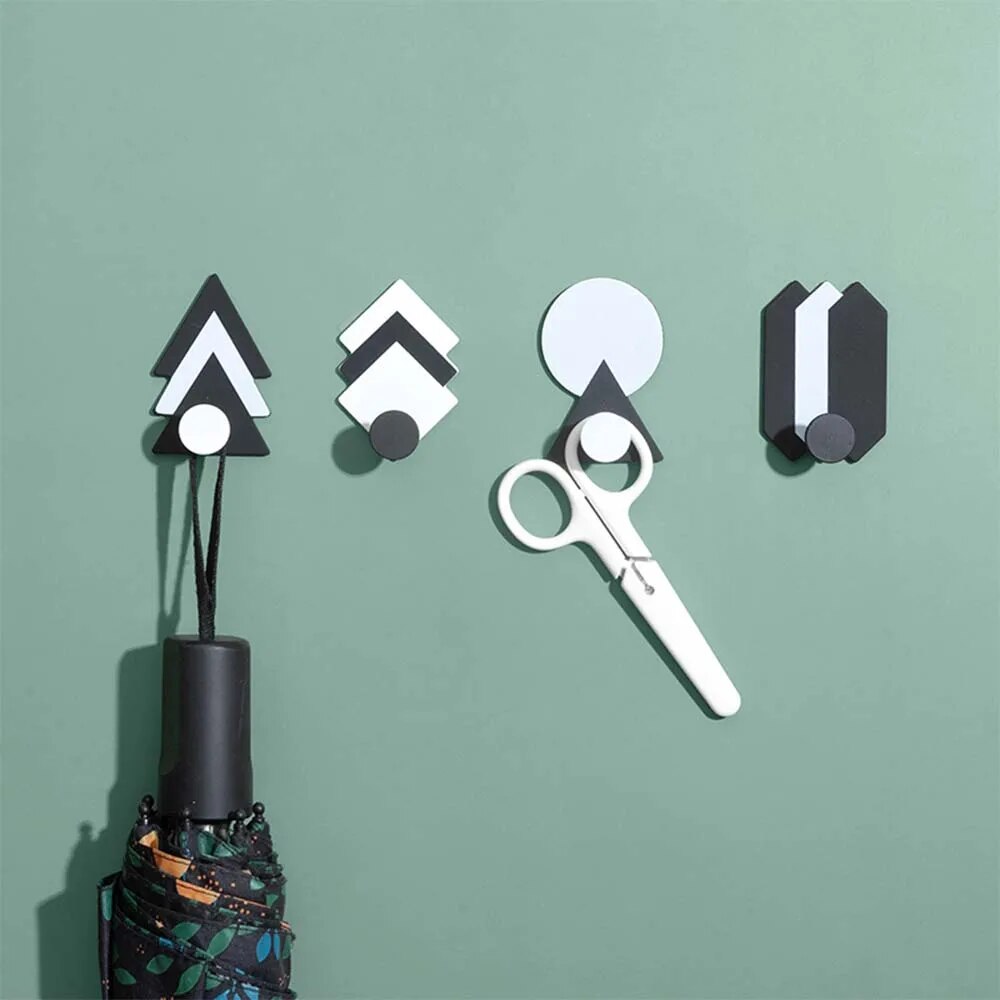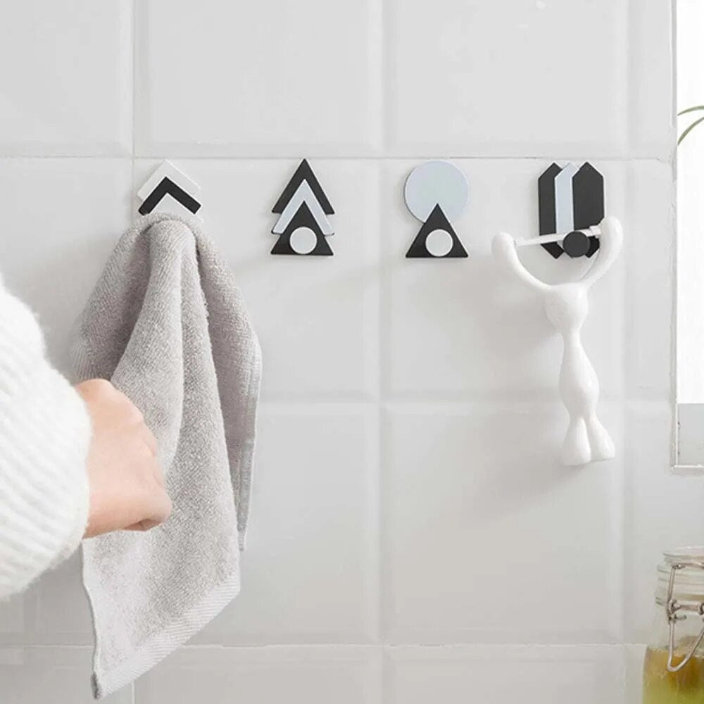 Nordic Style Wrought Iron Geometric Hook Seamless Sticky Hook Creative Non-porous Kitchen Wall Hanging Bathroom Accessories