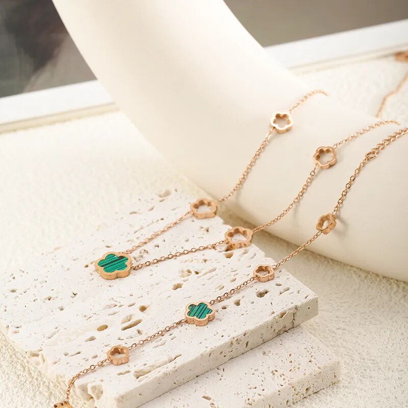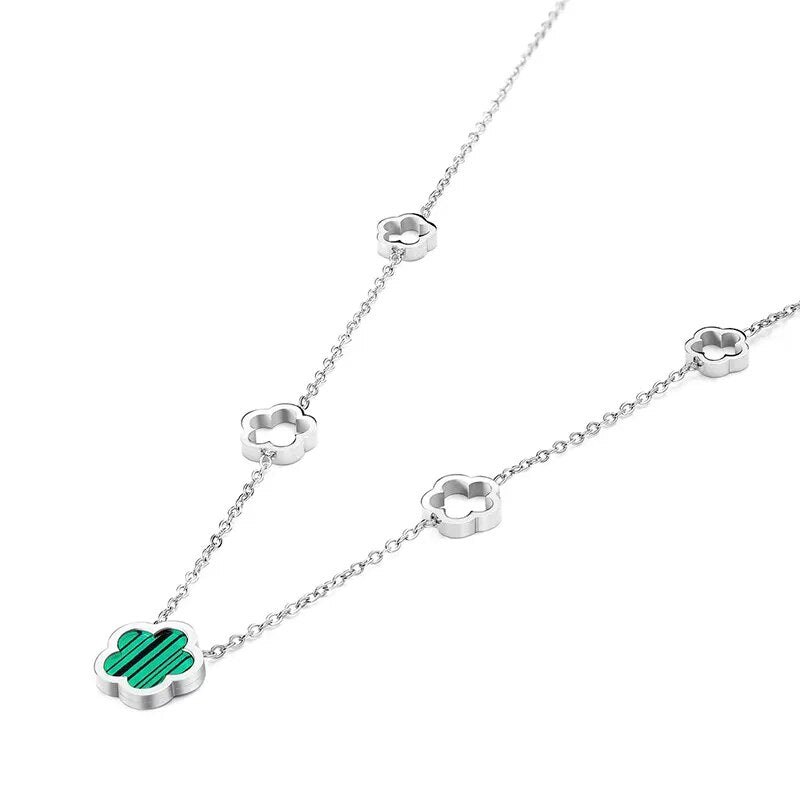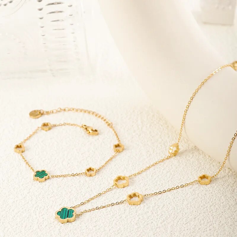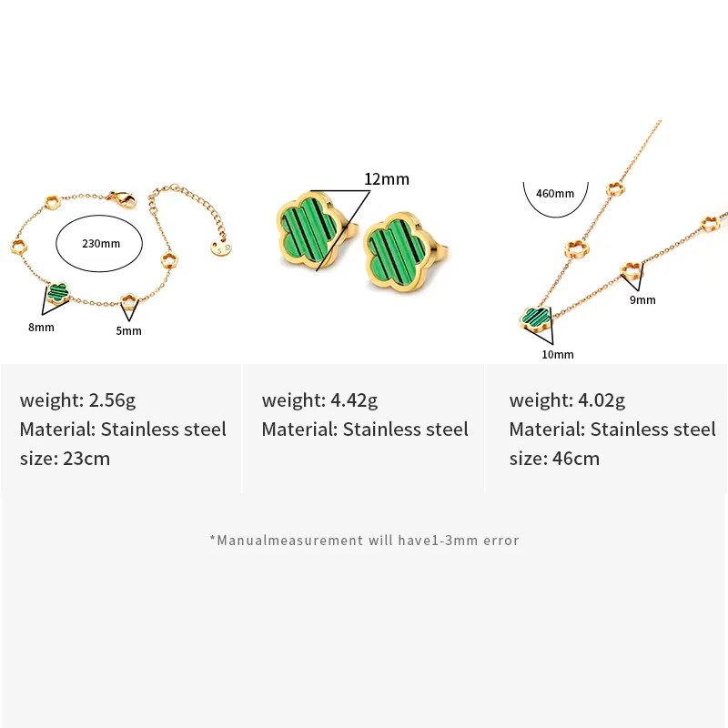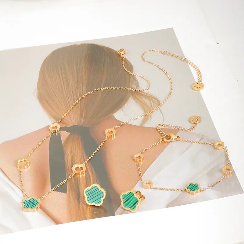 PAXA Luxury Elegant Green White Shell Flower Earrings Necklace Bracelets Waterproof Stainless Steel Jewelry Sets for Women Gifts