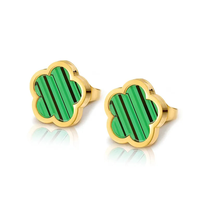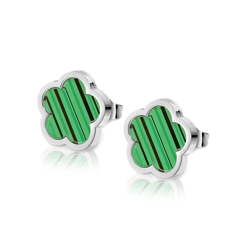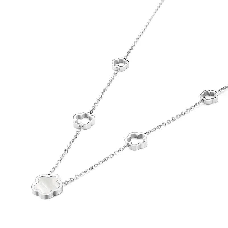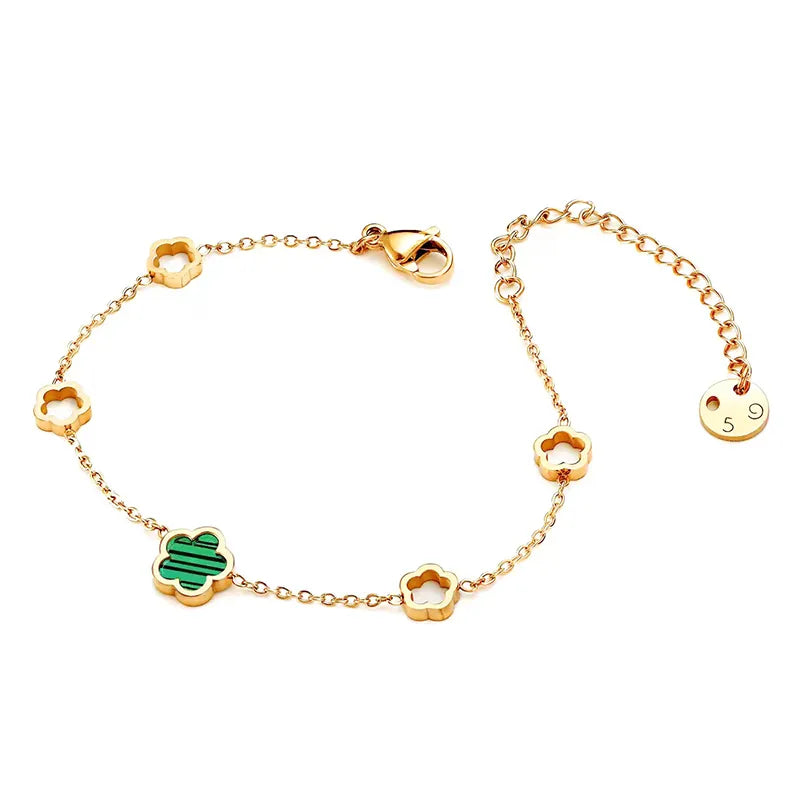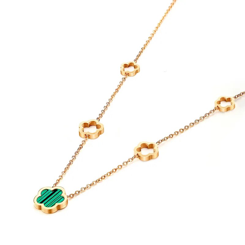 PAXA Luxury Elegant Green White Shell Flower Earrings Necklace Bracelets Waterproof Stainless Steel Jewelry Sets for Women Gifts