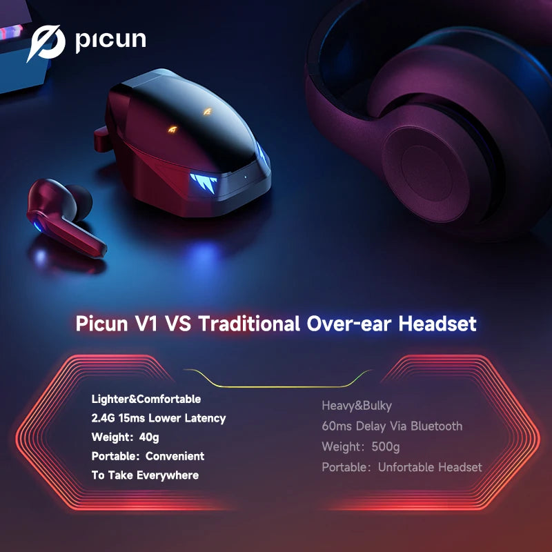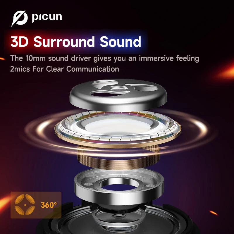 Picun V1 Gaming Earbuds, 15ms Low Latency with 2.4Ghz Dongle, 3D Stereo Sound, Bluetooth 5.3, IPX4 Wireless Earbuds with Nois