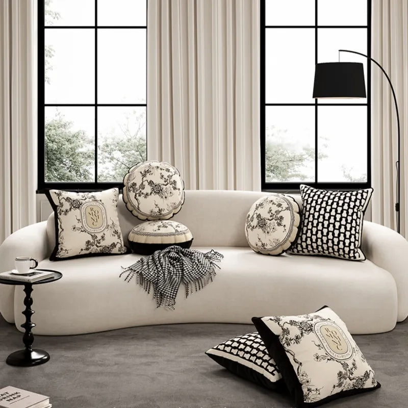 Retro Black Flora Pillow Cover Ivory Sofa Cushion Case Chinese Luxury Velvet Home Cojines Elegant Chair Bedding Coussin Decorate
