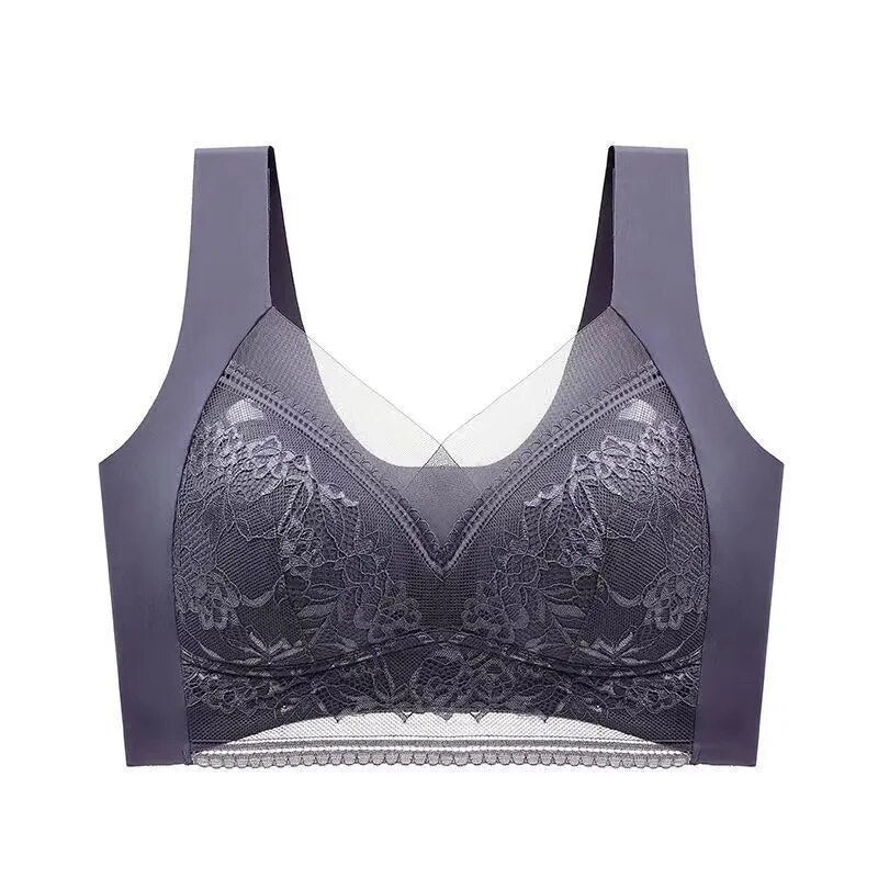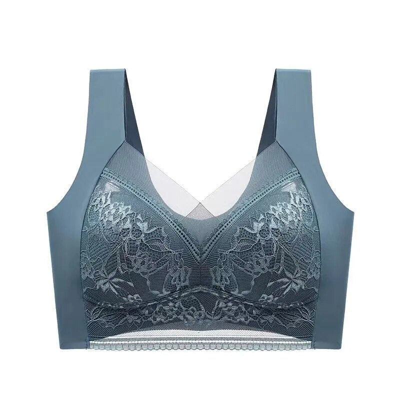 Lace Bras for Women Perspective Full Cup Solid Color Brassiere V-Neck Seamless Crop Top Female Push Up Breathable Lingerie