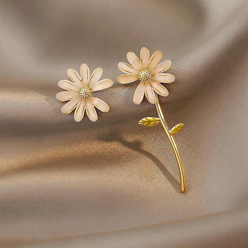 Summer New Korean Floral Daisy Flower Drop Earrings Fashion Fresh Sunflower Asymmetric Earrings Girl Ears Jewelry Brincos Gift