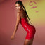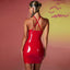 Summer PVC Bodycon Halter Sleeveless Dress Club Latex Leather Midi Dresses Women Bare Chest Hollow Sexy Bag Hip Skirt New Custom