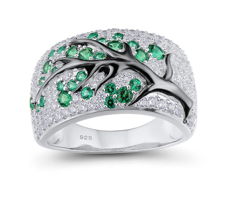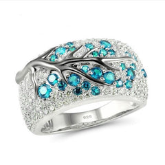 Top Quality Cute Wedding 925 Stamp Ring Women Rose Red CZ Leaf Tree Trendy Party Sterling Plata Finger Ring Wedding Jewelry