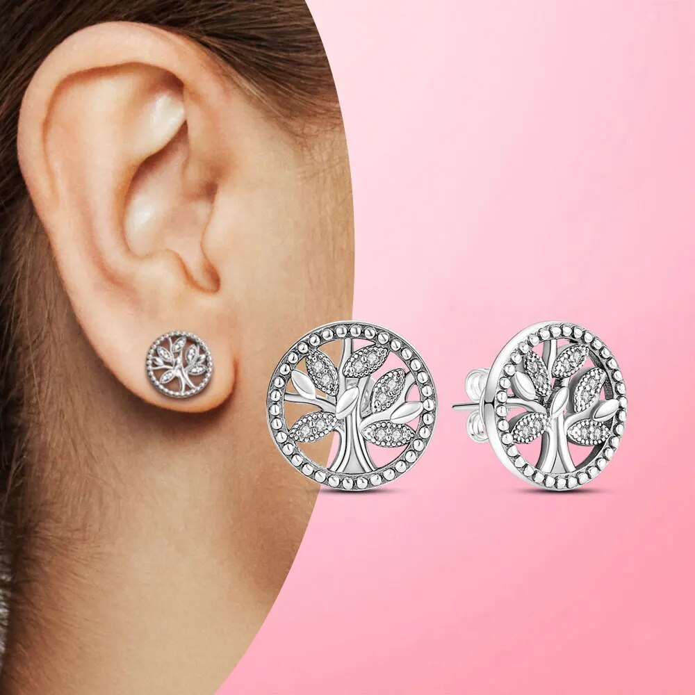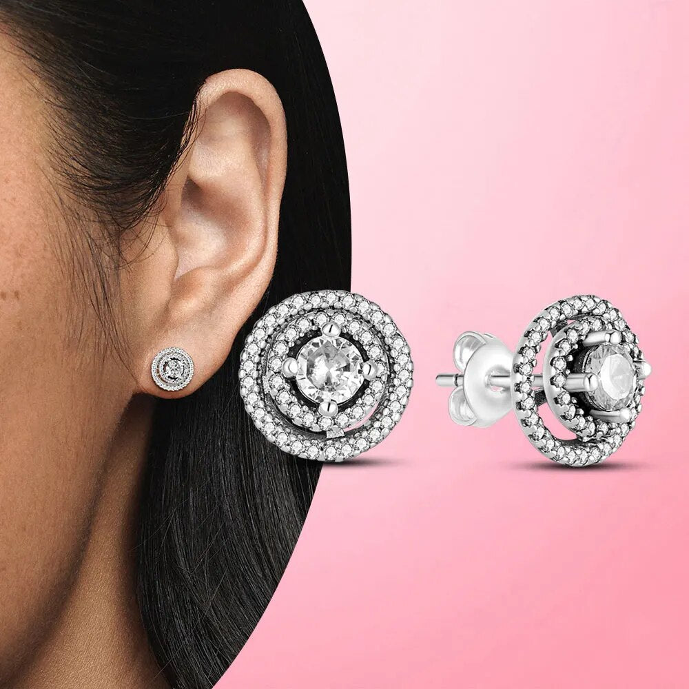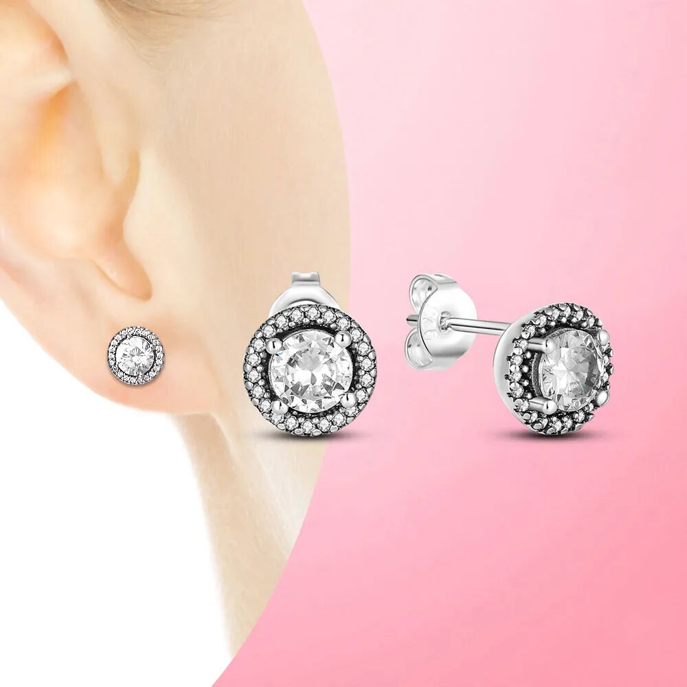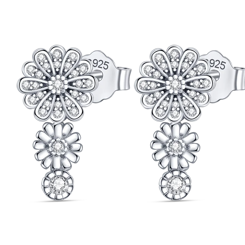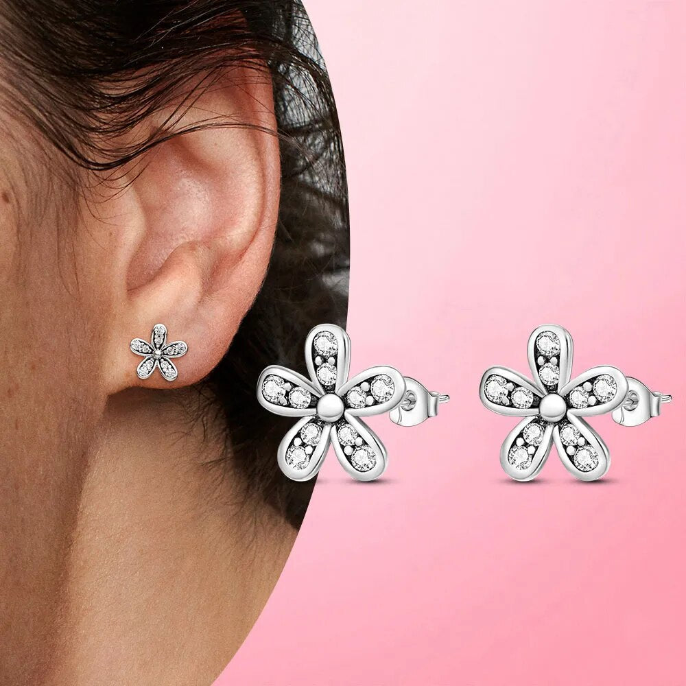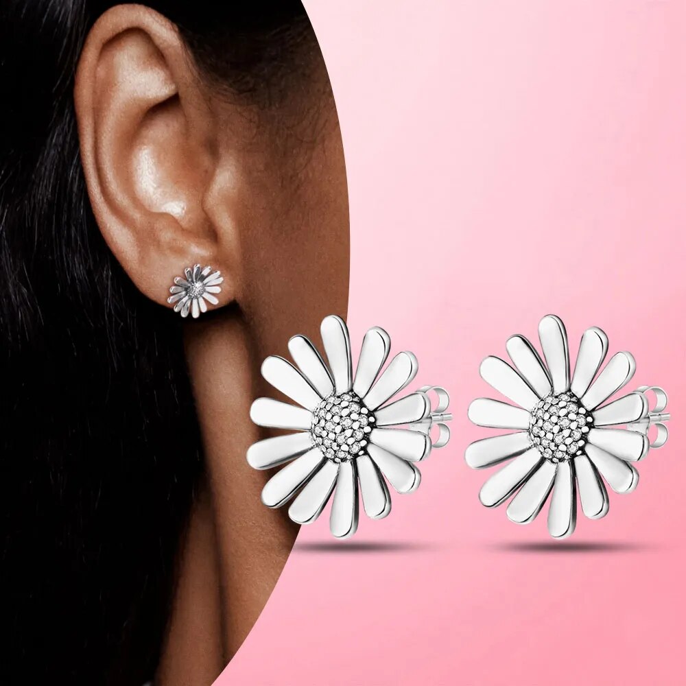 Trend Stud Earring for Women Fashion Daisy Flower Geometric Round Circle Shape Earrings Stud Female Silver 925 Zircon Jewelry