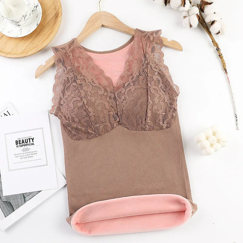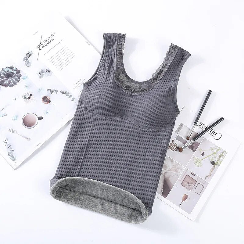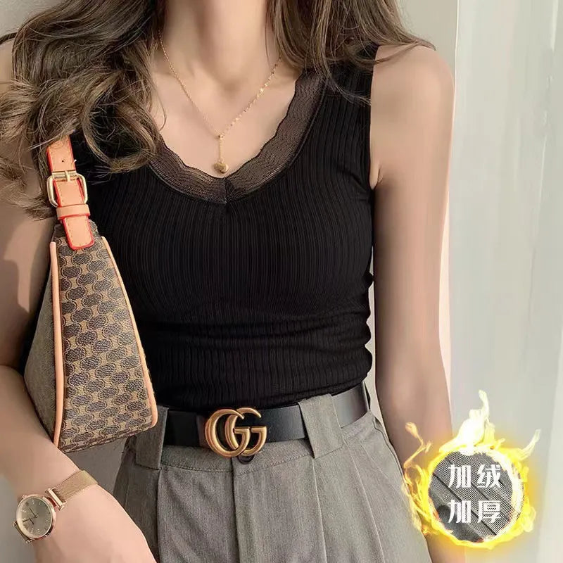 Winter Velvet Thickened Undershirt Women Solid Color Slim Cozy Thermal Underwear Camisole Warm Sling Vest Top Bottoming Clothing