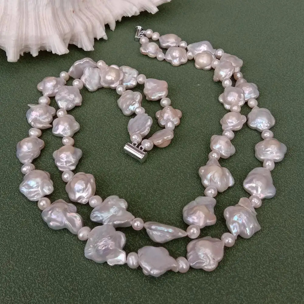 Y·YING 2 Strands Cultured Pearl Necklace Flower Shape Keshi Pearl Necklaces For Women