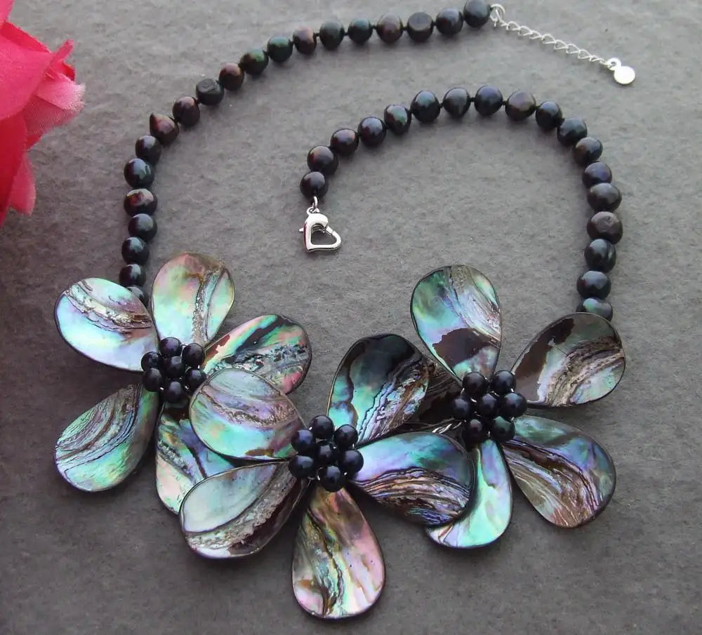 Y·YING Black Pearl Abalone Shell Necklace Handmade Statement Necklace 18"