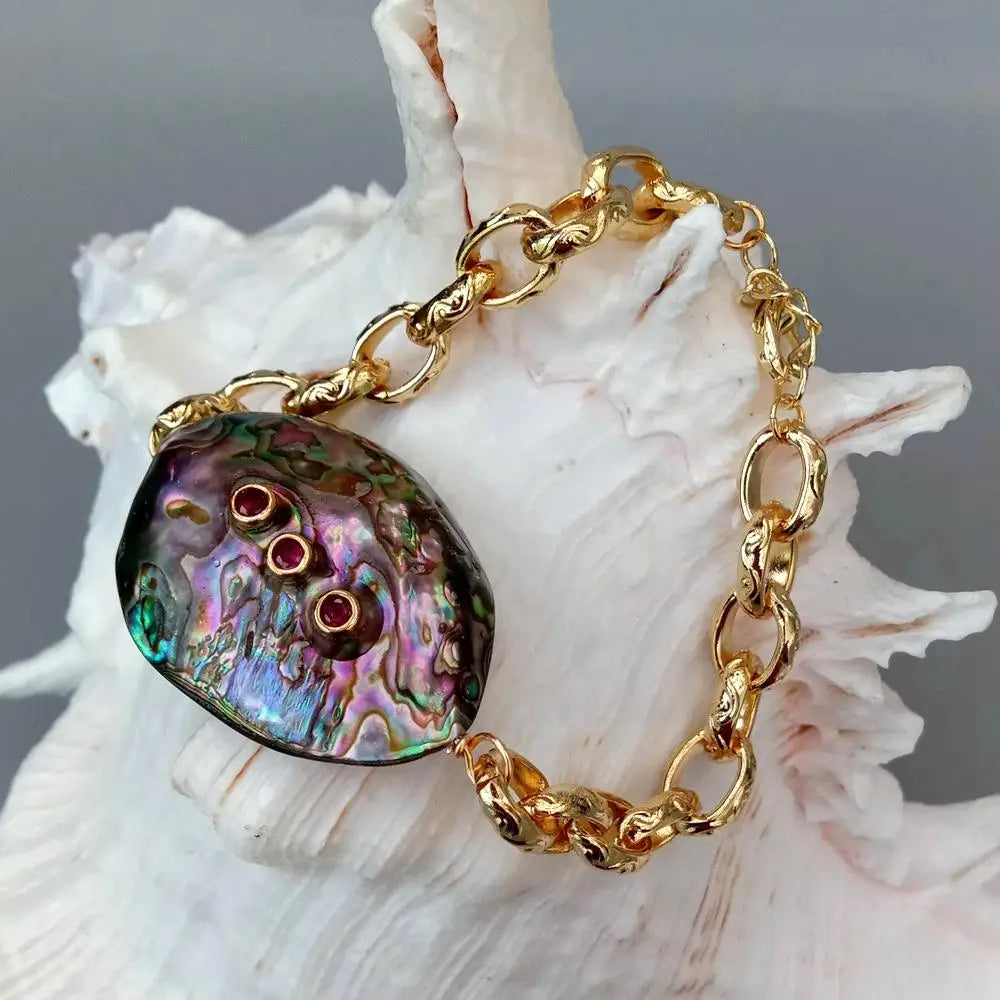 Y.YING Natural Abalone Shell Fuchsia Cz Chain Charm Bracelet Handmade Girl Party