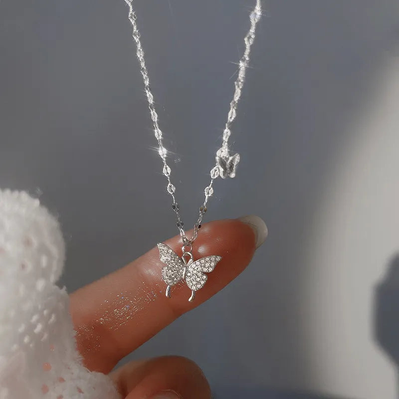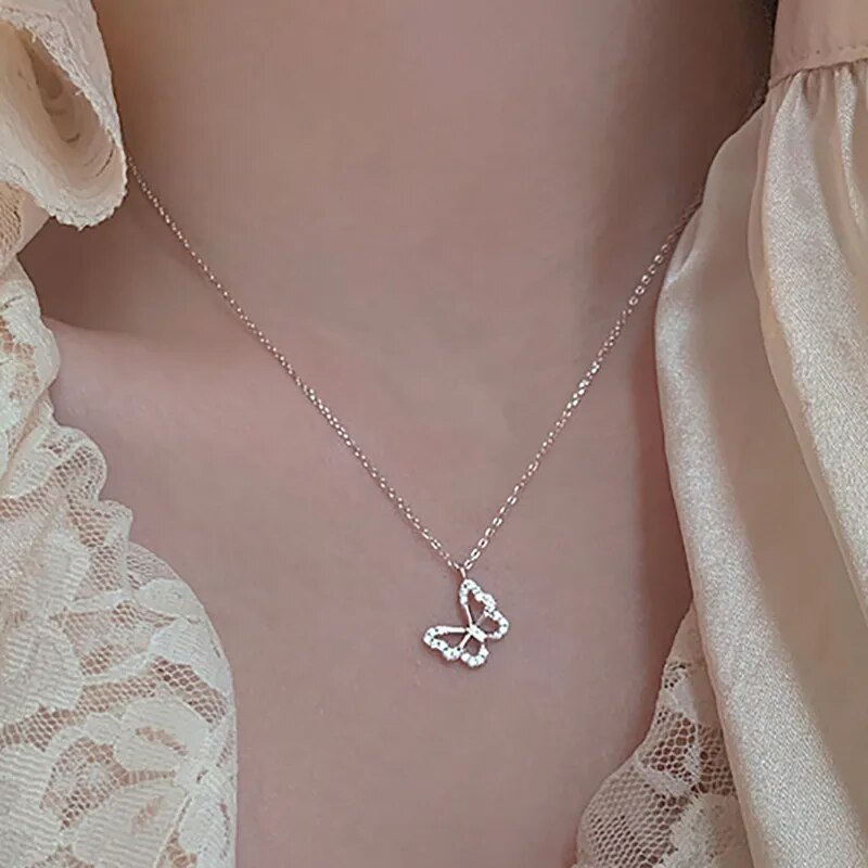Zircon Butterfly Pendant Choker Light Luxury Aesthetic Niche Clavicle Silver-plated Necklace Jewelry Women Gifts